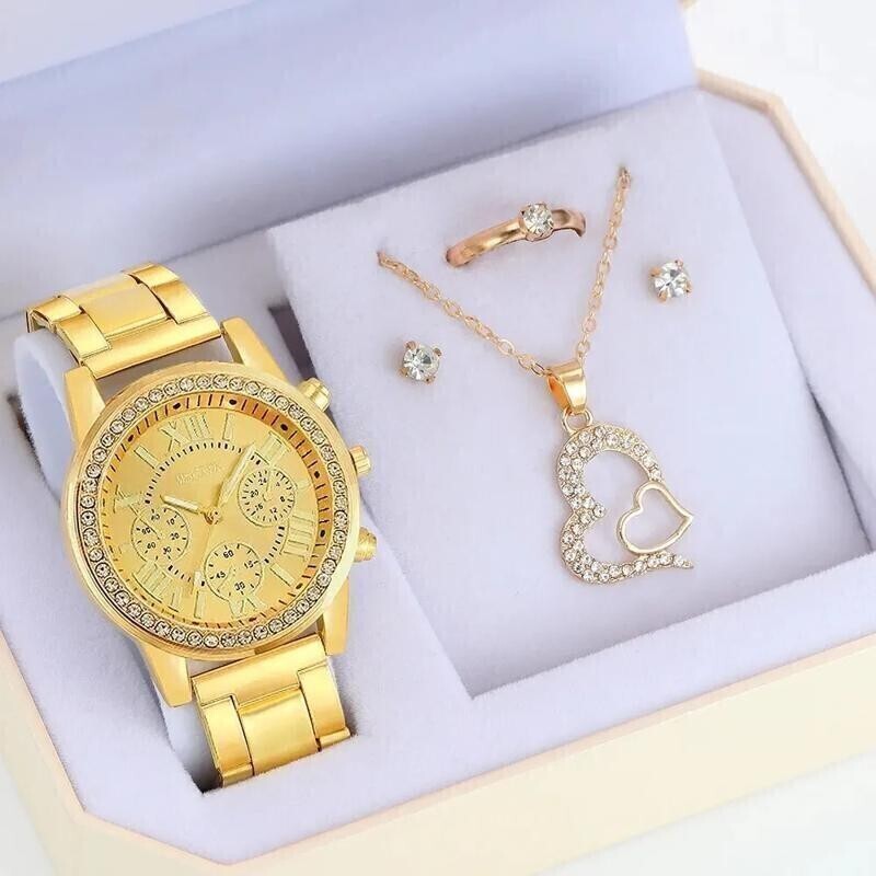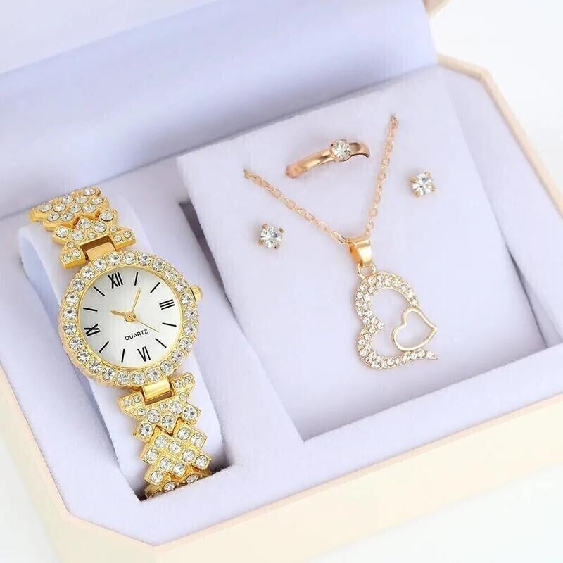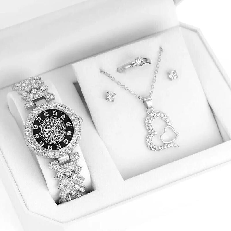 【定価40800円】【1円スタート】5個セット 高級 リング ネックレス イヤリング ラインストーン カジュアル 時計
