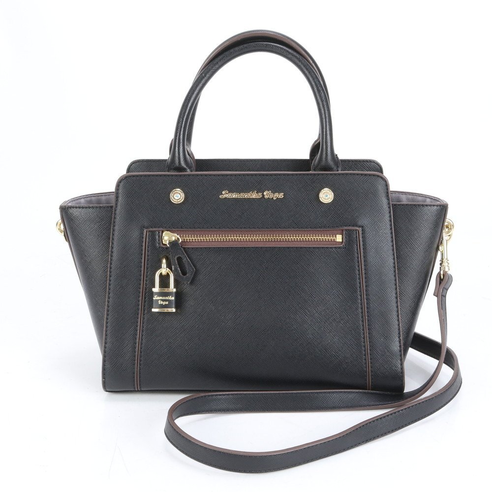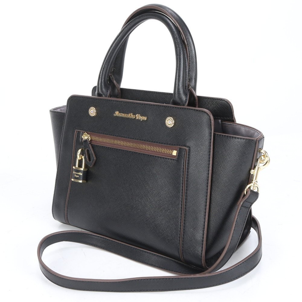 1円■美品■サマンサベガ■2WAY ショルダーバッグ 斜め掛け クロスボディ ハンド トート ブラック 黒 レディース RCE CN6-4