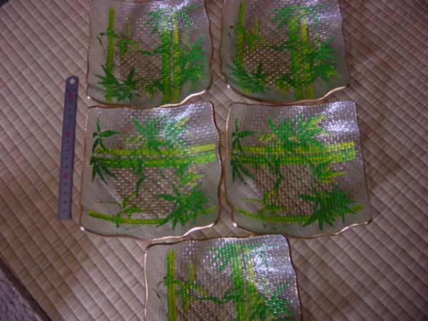 涼しげな模様の大皿1枚と小皿5枚セットです。いただいたもので、ずっと食器棚に飾っており未使用品です。お箱はありません。ものさしは大きさ比較のためで15CMです。自宅保管をご理解いただき、ノークレーム、ノーリターンでお願いします。
