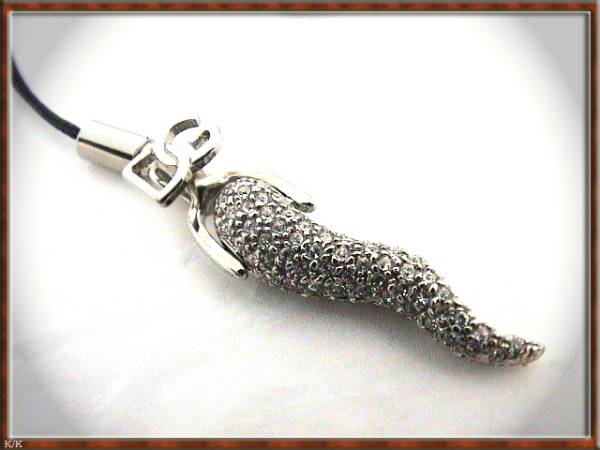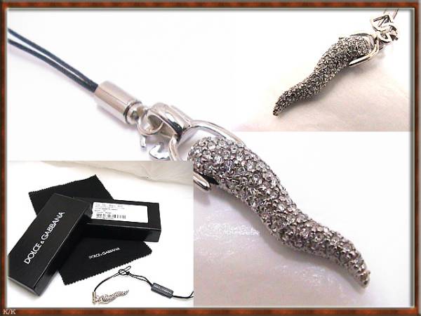 <新品・本物・直営店買付商品>ドルガバ*ストラップ サイズ:全長11.5cm、トップ4.5cm、紐5.6cm 材質:ニッケル、ラインストーン 備考:DGロゴマーク有り! *箱付き*