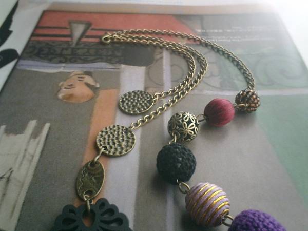 巴里・ロゼッタシリーズです♪クラシカルに装って・・キュートな異素材を集めたネックレスです!シックなお色でまとめてアンティークな雰囲気です♪12ミリから24ミリ位までの樹脂ビーズやフェルト玉や編みボールやワイヤーボールやビーズ玉に黒のウッドチャームや花柄のメタルチャームやデザインチェーンを合わせて可憐な表情です♪長さは73センチ位で調節自由です♪♪お揃いのブレスレットも出品しています♪シンプルで飽きのこないいつまでも着けられるデザインを考えて作りました!ハンドメイドをご理解頂いてノークレーム、ノーリターンでお願いします
