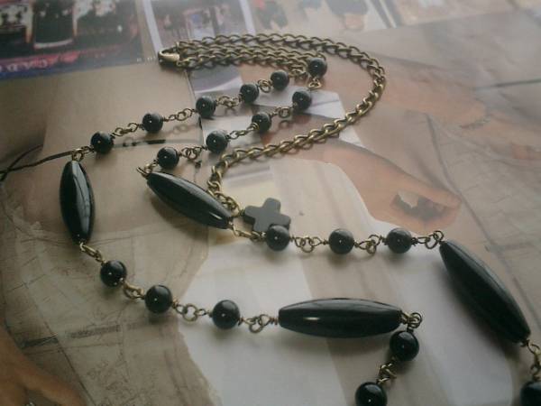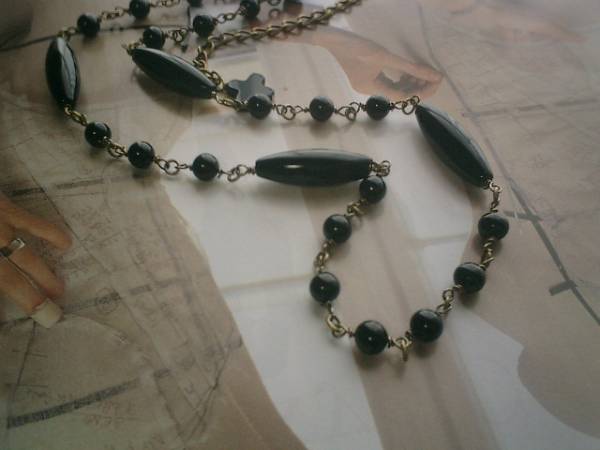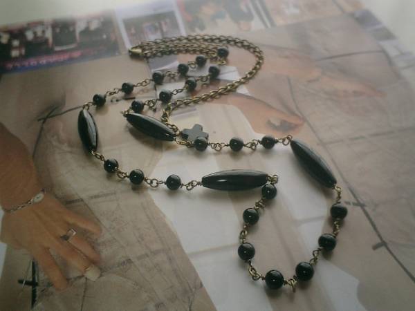 巴里・ロゼッタシリーズです♪ロマンチックを見つけて!シックなオニキスのキュートなネックレスです♪さりげなくパンクしています♪6ミリの丸玉と35×8ミリ位のナツメ型のオニキスです♪長さは全長78センチ位で調節自由です♪2連にされても素敵です♪お揃いのネックレスやブレスレットも出品しています♪シンプルで飽きのこないいつまでも着けられるデザインを考えて作りました!ハンドメイドをご理解頂いてノークレーム、ノーリターンでお願いします