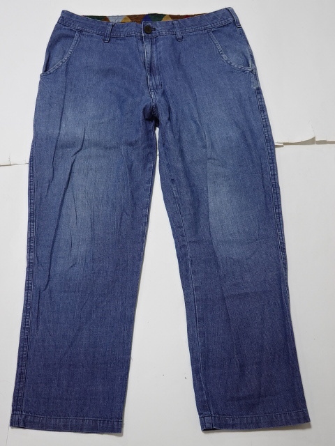サイズは消えていてわかりません。実寸のサイズですが、ウエストは83センチ、股上は29センチ、股下は62センチ、裾幅は18.5センチです。