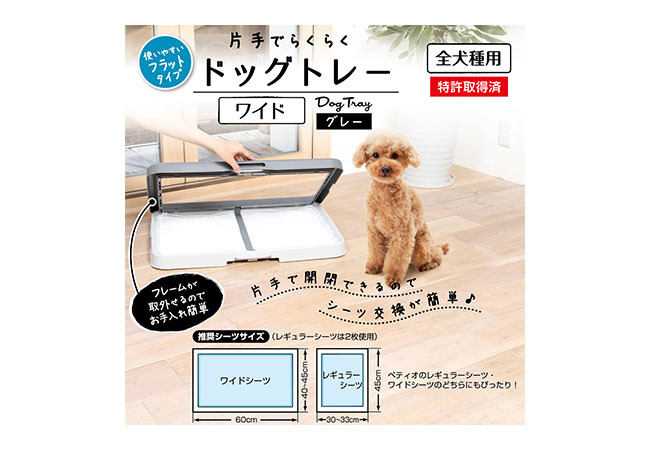 片手でらくらくドッグトレー ワイド グレー Petio 片手で開閉 犬 いぬ イヌ ドッグ DOG 愛犬 トイレ といれ 送料無料