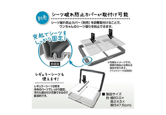 愛犬がシーツを誤食したり、イタズラをする場合は、別売のペティオ「シーツ破れ防止カバー」を2枚取付けてください。