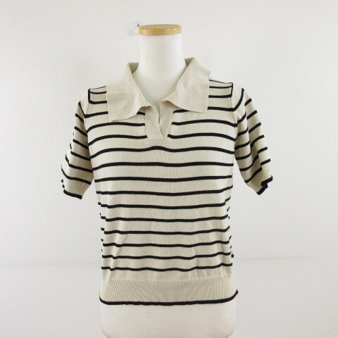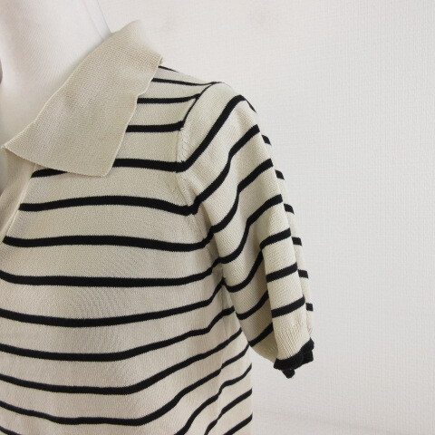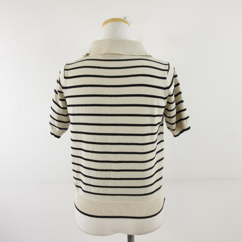 by Muni:r ボーダー襟付きニット 半袖 ベージュ 黒 F *A87 レディース