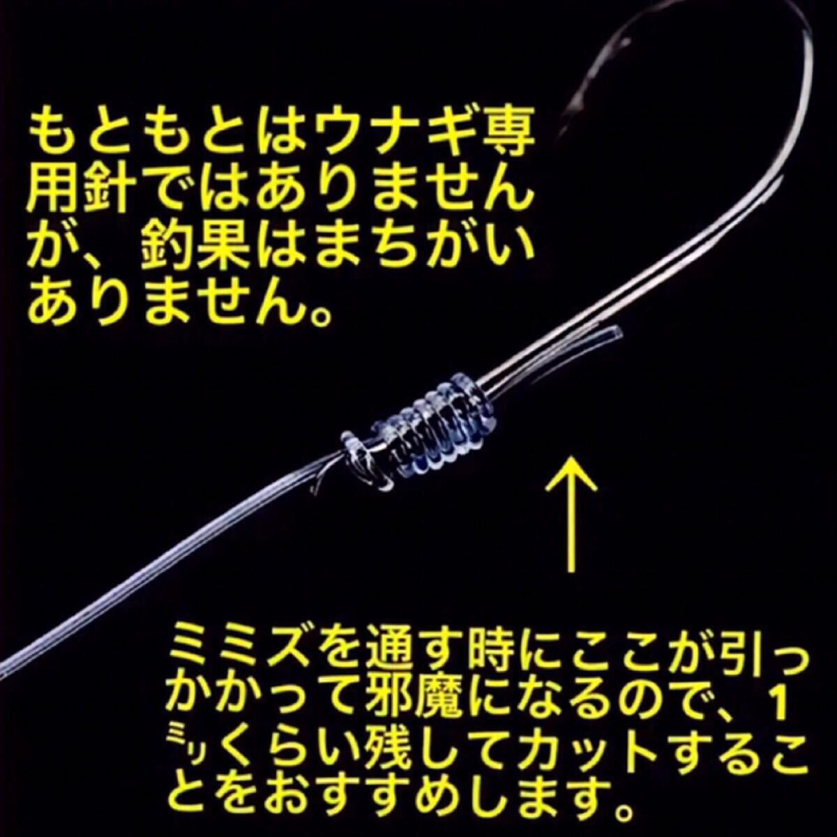 ハリスは3㎜(3.5号〜4号)を使用してあるので、市販のウナギ針よりも安心です。