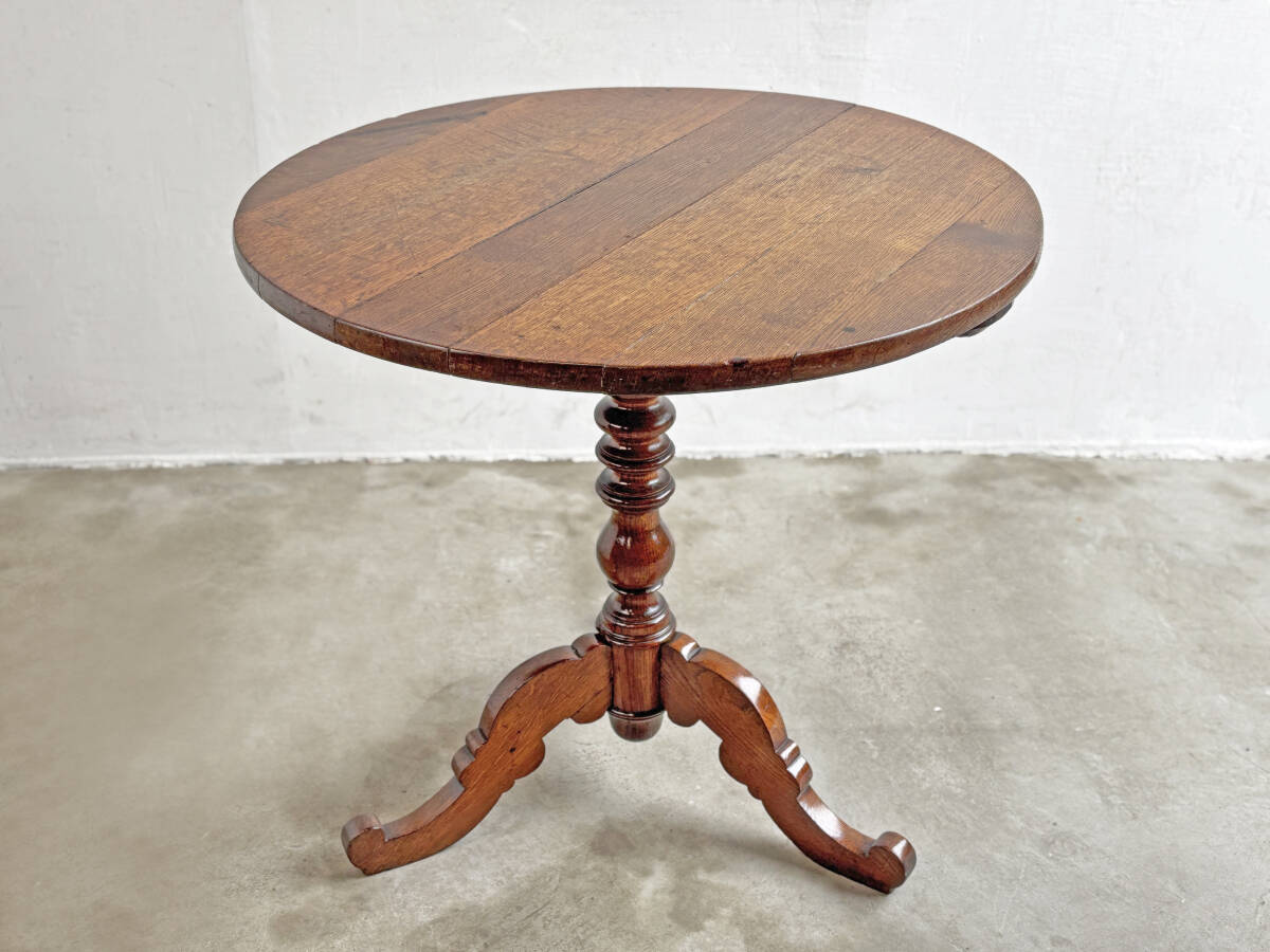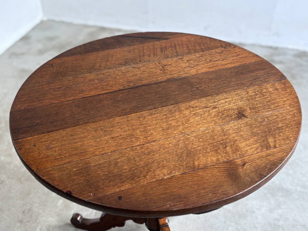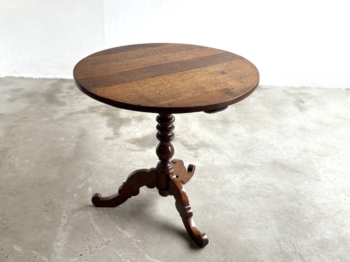 フランスアンティーク サークルカフェテーブル/オーク無垢/アトリエ/丸型/アパレル什器/atelier/フレンチ/サイドテーブル/猫足/art deco