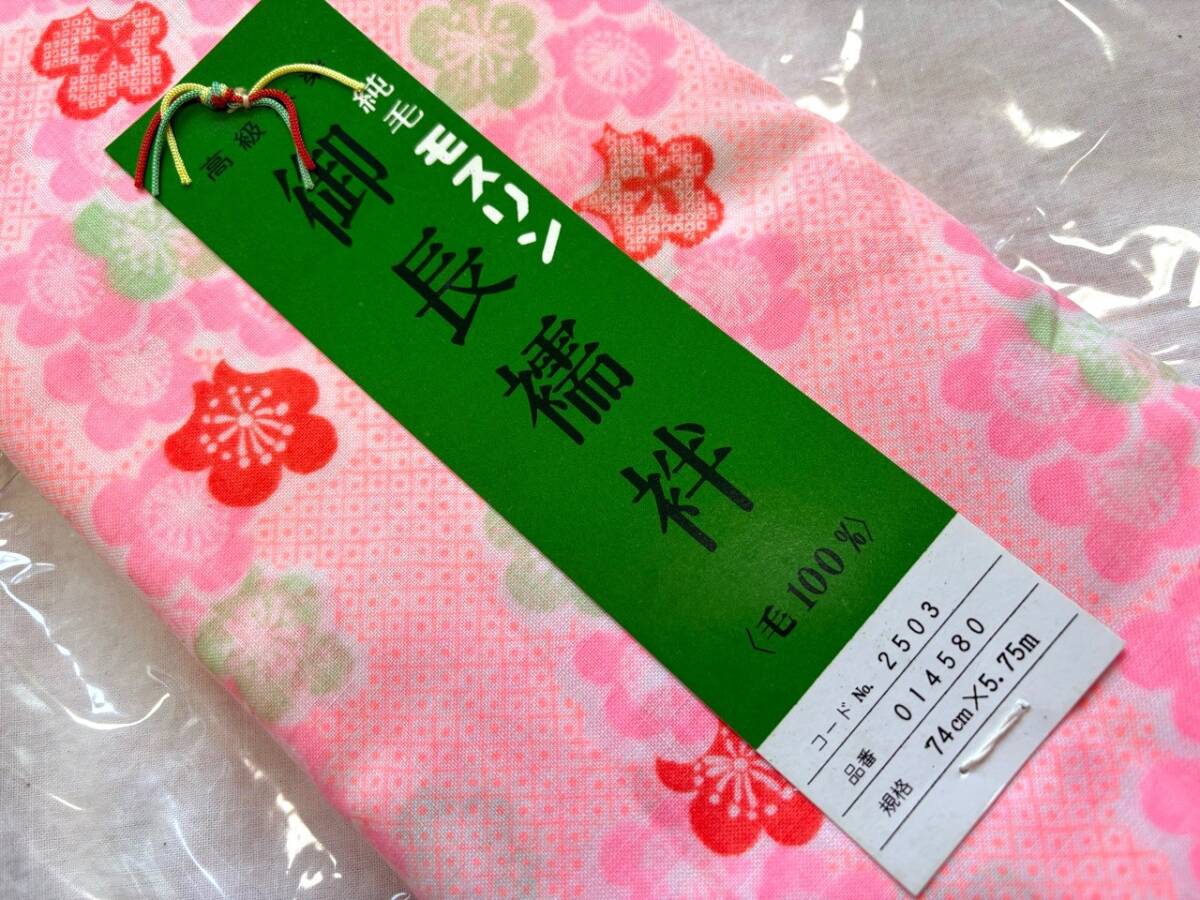 0009★訳あり未使用品*長襦袢地*反物*生地*74cm×5.75m*ピンク*毛100%*着物*和服*和装*未仕立て*和裁*ハンドメイド*お得★