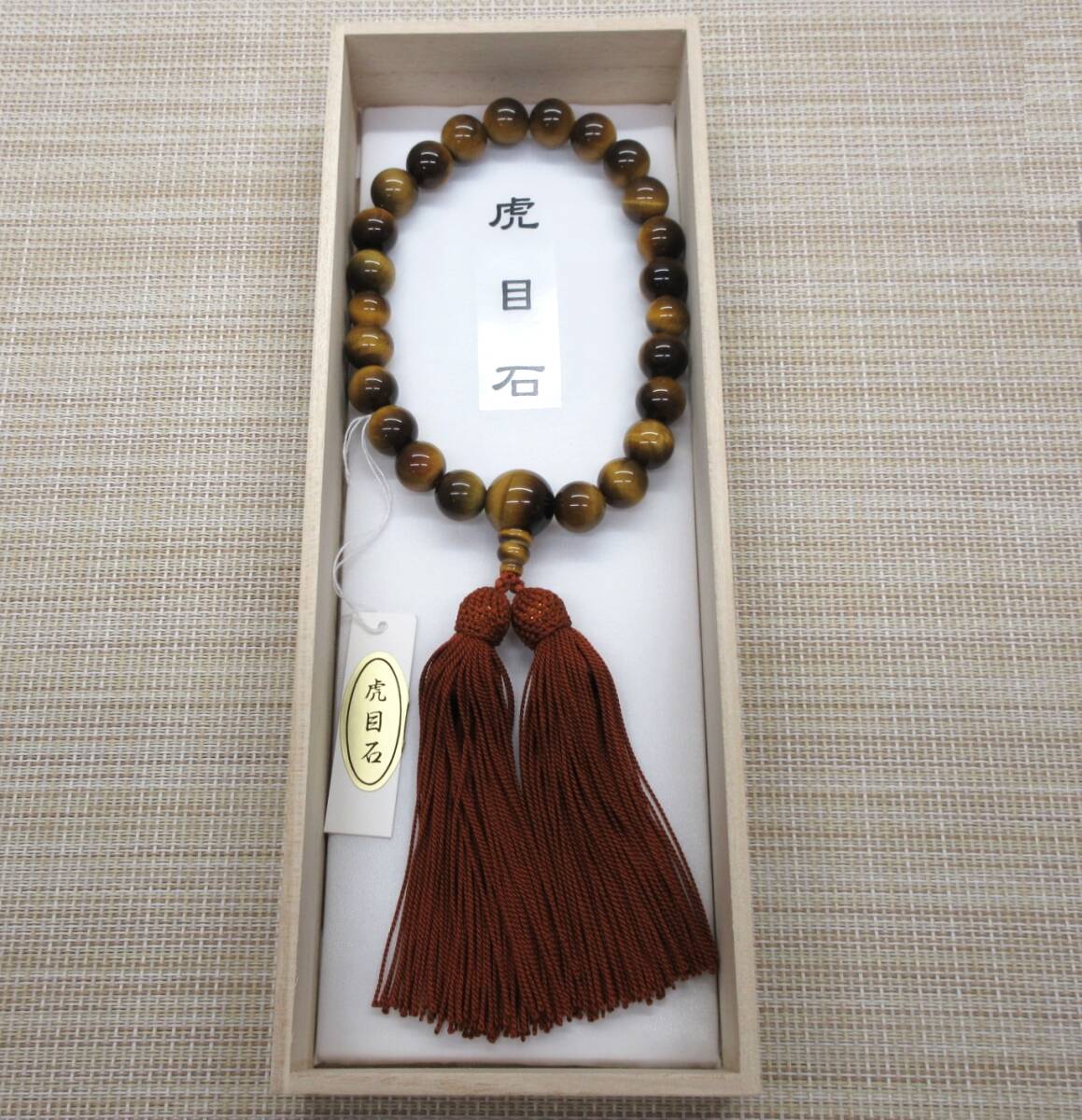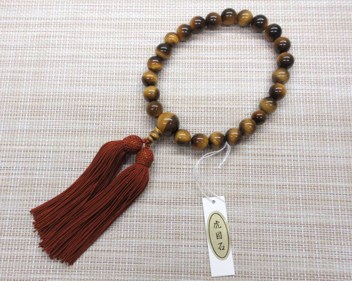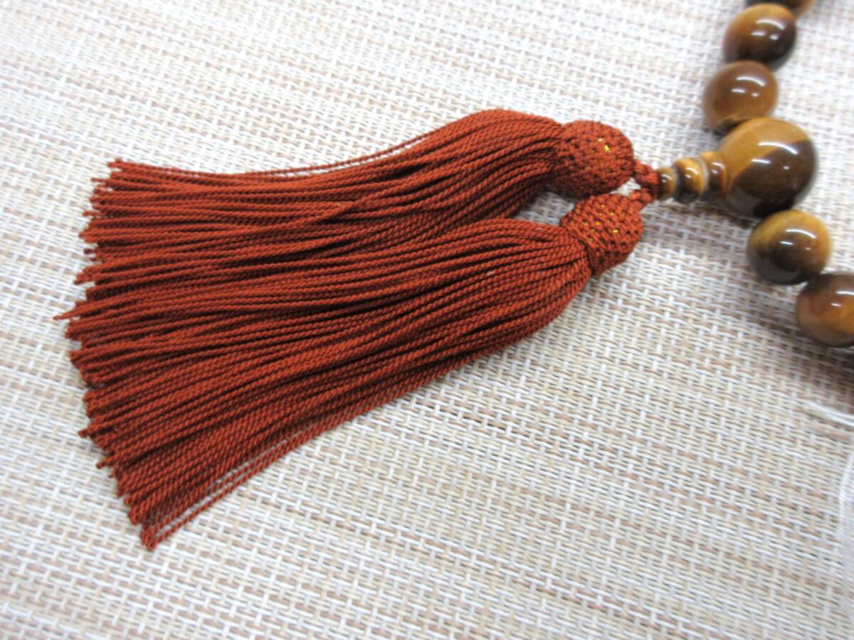 男性用京念珠 【虎目石】 一輪 頭付房 赤茶色