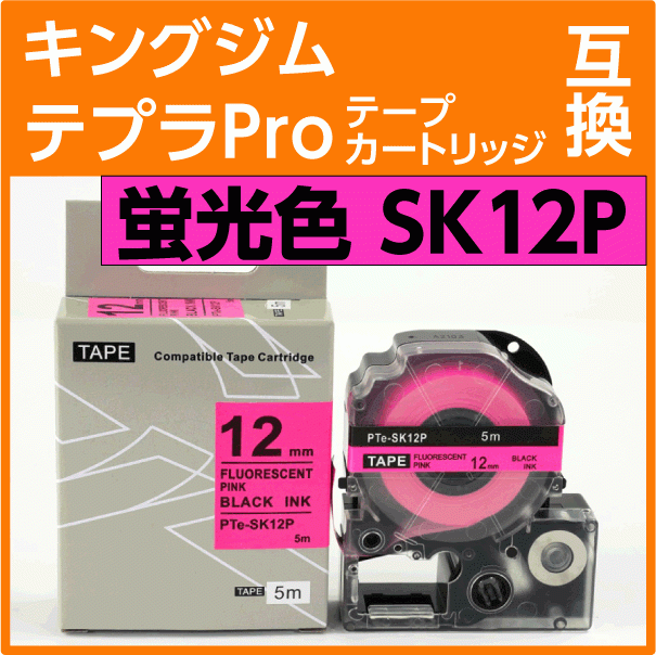 キングジム テプラPro用 互換 テープカートリッジ SK12P 蛍光ピンク 12mm