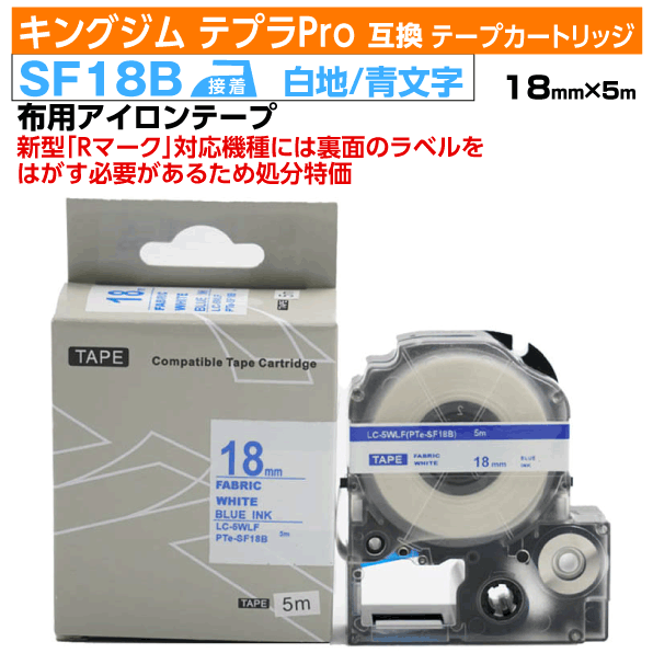 【数量限定セール】キングジム テプラPro用 互換 テープカートリッジ 旧型 SF18B〔アイロンラベル〕18mm幅 白地 青文字 ホワイト ブルー