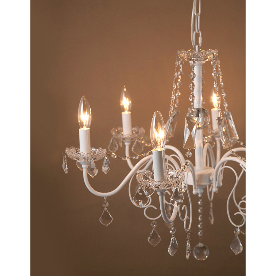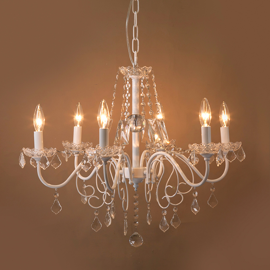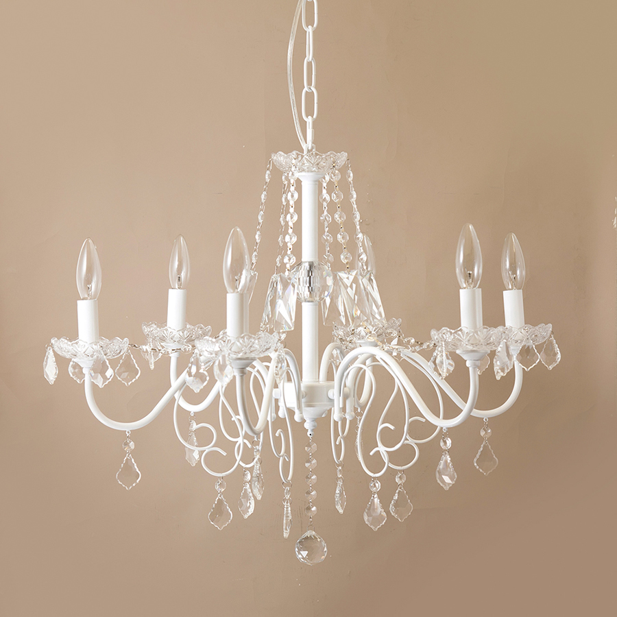 シャンデリア 6灯 LED対応 E12 シーリングライト 天井照明 吊り下げ 白 ホワイト クリスタルガラス 豪華 ゴージャス シャンデリア電球 付属