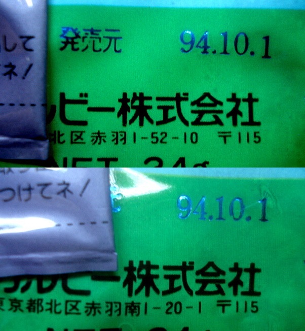 カルビー 1994年 プロ野球チームチップス 住所2種類 同一発売日 異種 空袋 パッケージ 赤羽・赤羽南 カード2枚付属