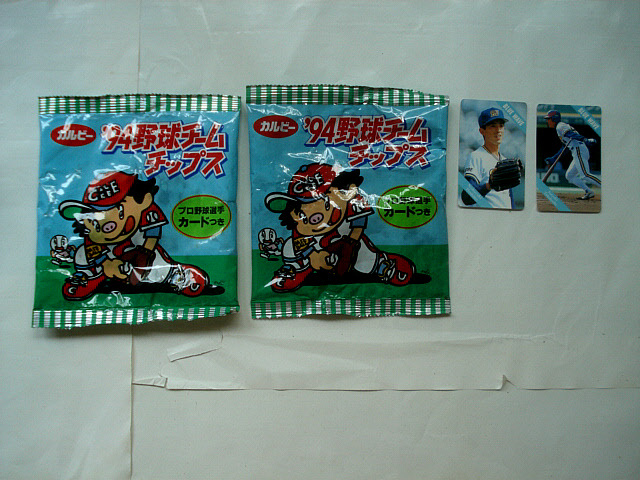 カルビー 1994年 プロ野球チームチップス 住所2種類 同一発売日 異種 空袋 パッケージ 赤羽・赤羽南 カード2枚付属