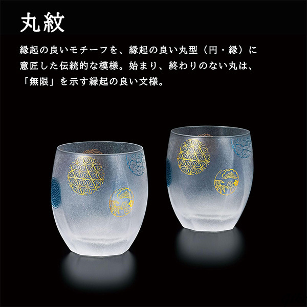 【食卓にもなじむ上品なペアロックグラス】 高級ロックグラス 345ml 丸紋文様 焼酎グラス ペアギフト 日本製ギフト プレゼント