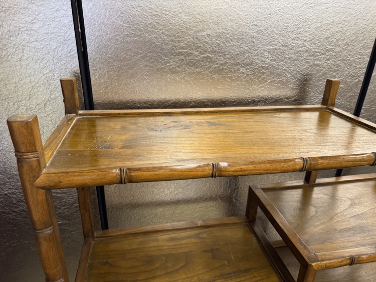 | ■状態 | 展示品になりますので説明文や写真で表現がない 細かなスレ、キズやガタツキ等がありますので、 あらかじめご了承ください。 天然木の特徴をご理解の上、ご検討ください。 細かい点が気になる方はご遠慮くださいませ。 店舗にて展示してありますのでお越しいただければ 品物をご覧いただくことができます。 |
