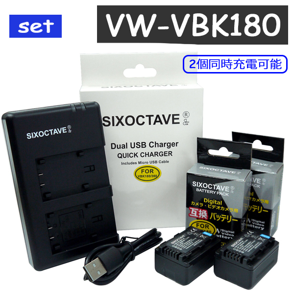 VW-VBK180 / VW-VBK180-K パナソニック 互換バッテリー2個と互換デュアルUSB充電器の3点set