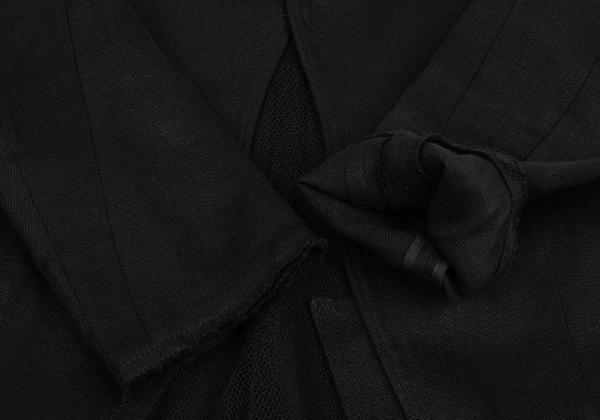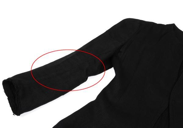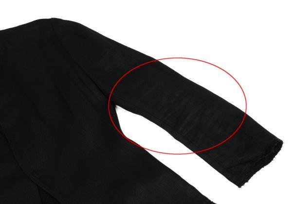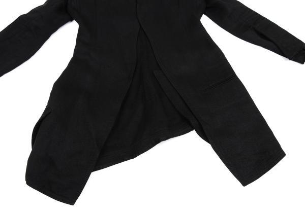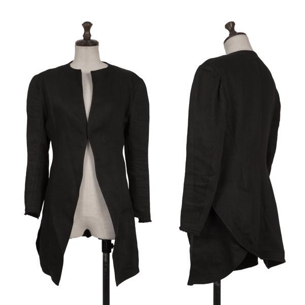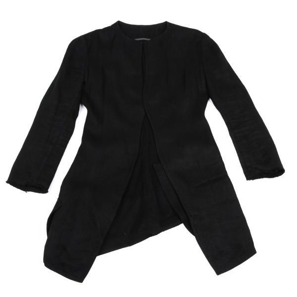 | ヨウジヤマモト ファムYohji Yamamoto FEMME リネン裁ち切りデザインノーカラーホック留めロングジャケット 黒1 |