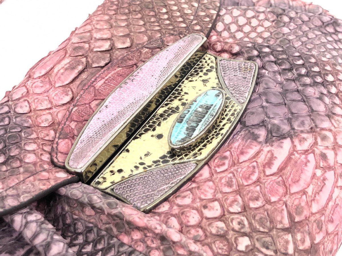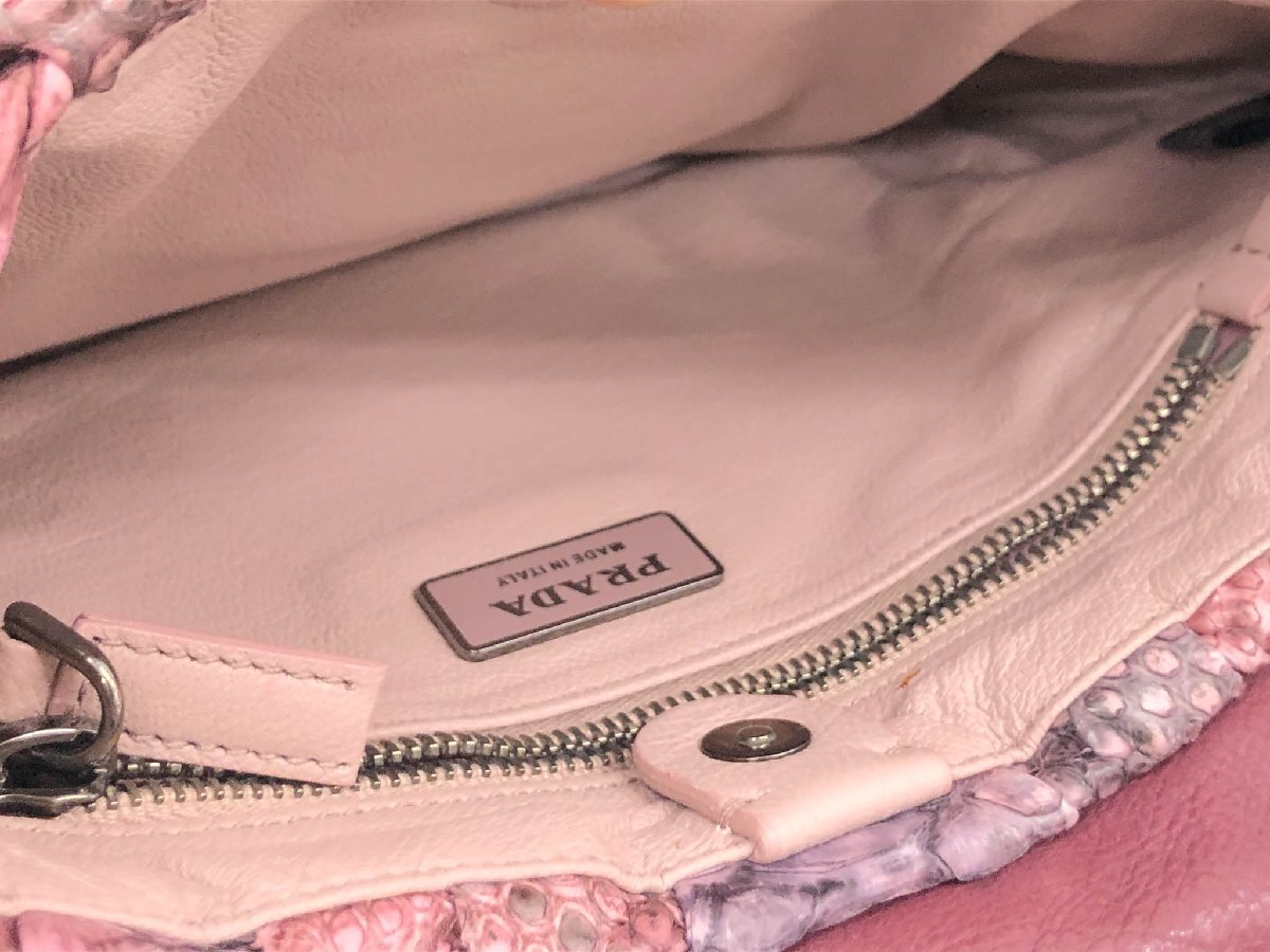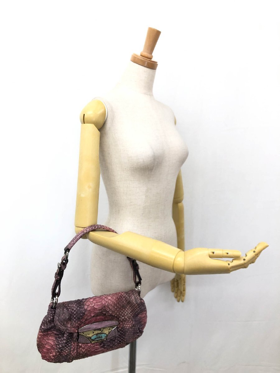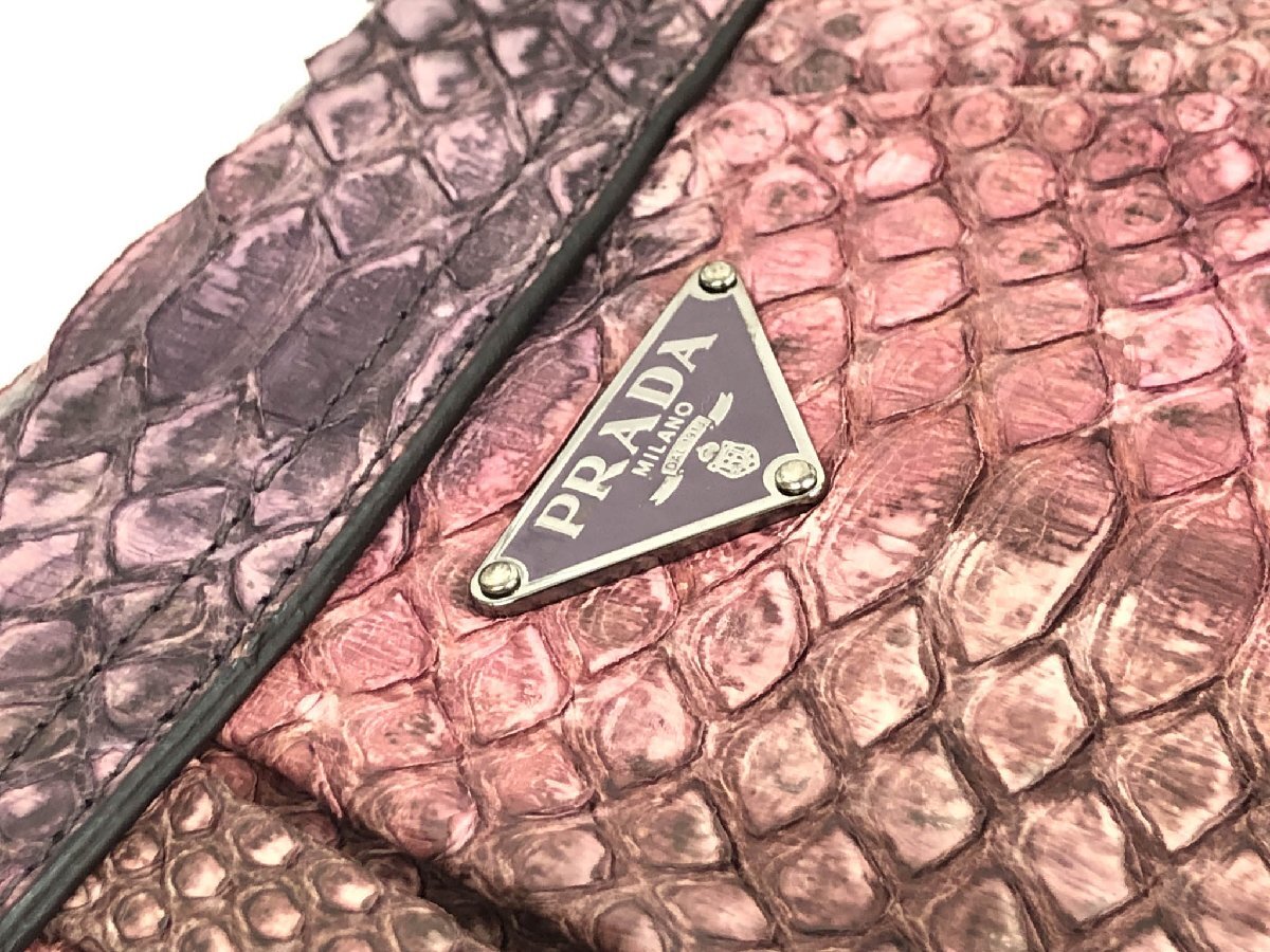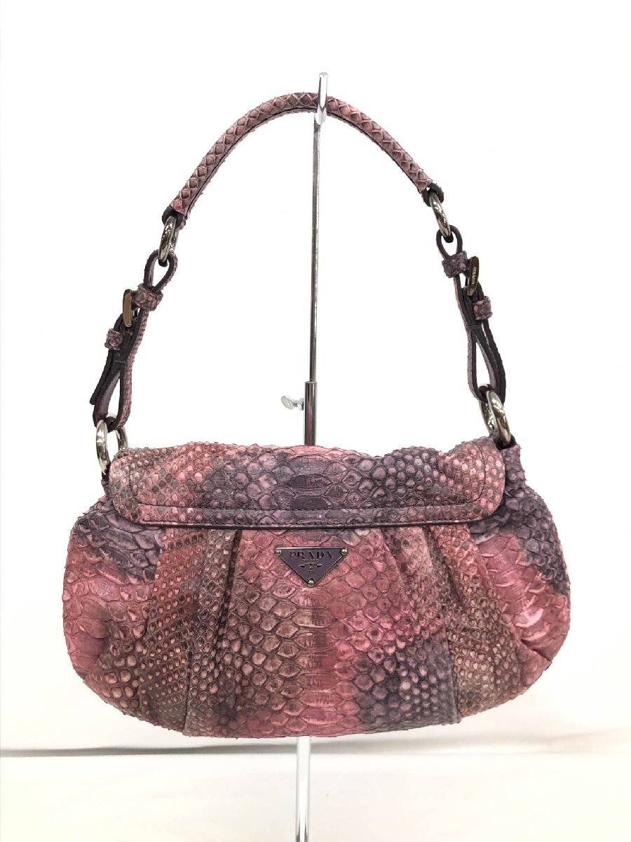 超美品 【プラダ PRADA】 パイソンレザー ワンショルダーハンドバッグ 三角ロゴプレート BR2809 (レディース) ピンク系 ○5HT2913◯