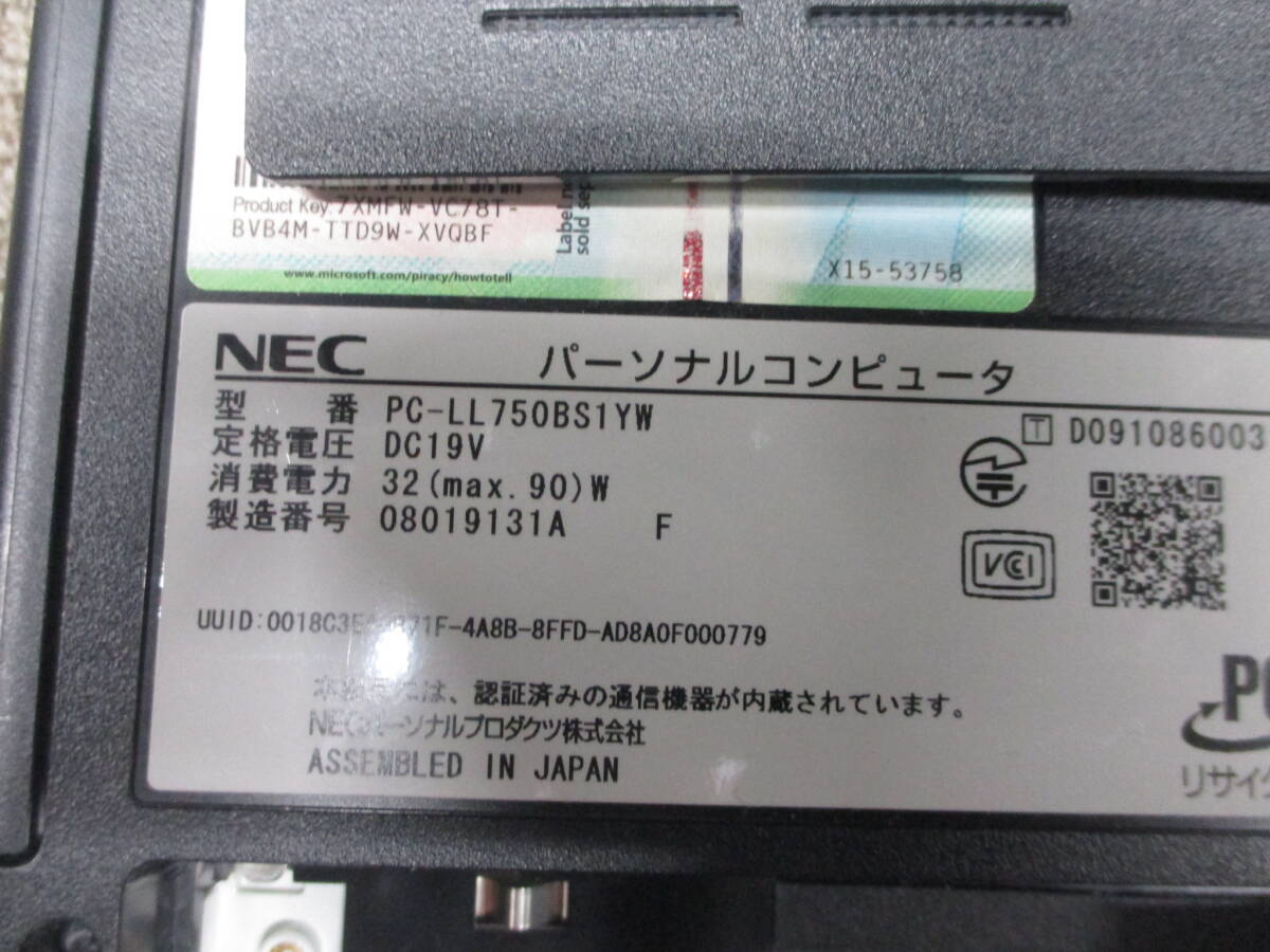 a423 NEC LaVie LL750/B(PC-LL750BS1YW) HDDレス  ノートPC