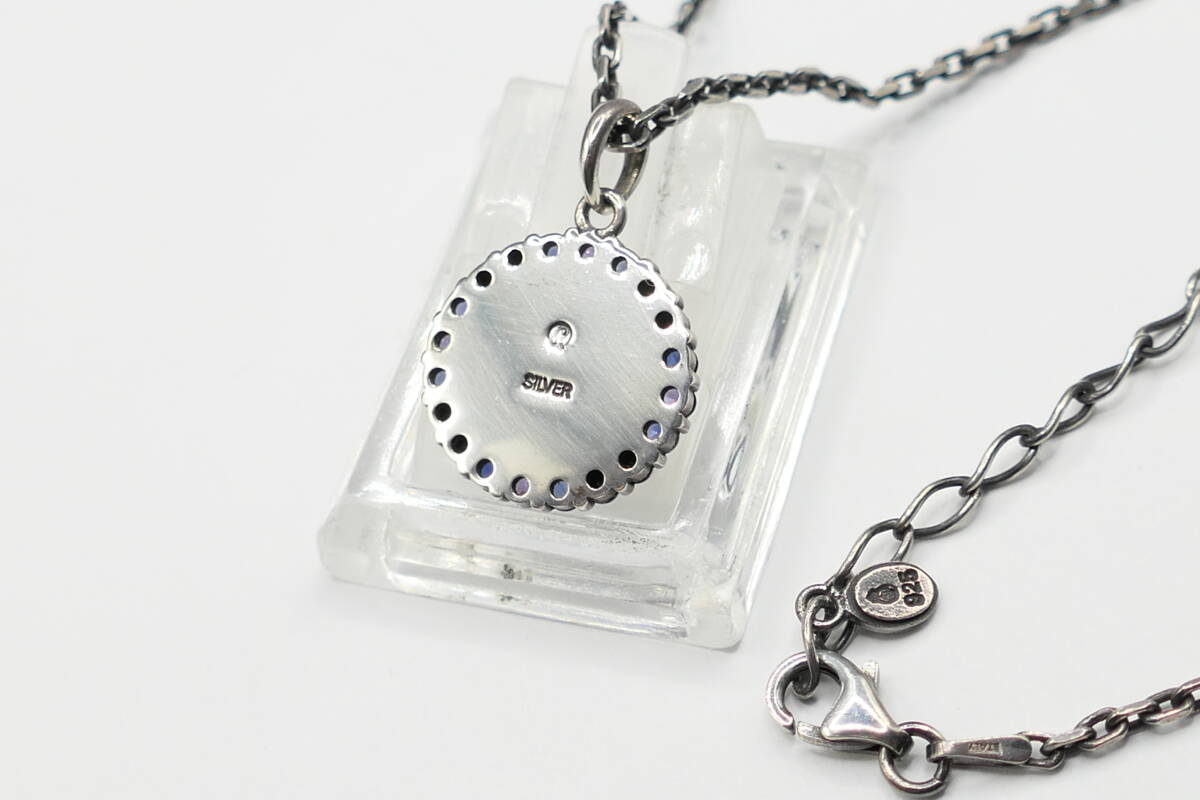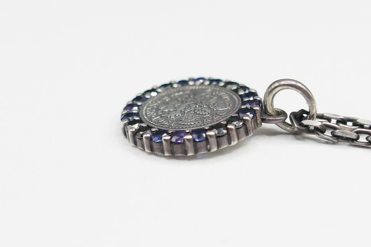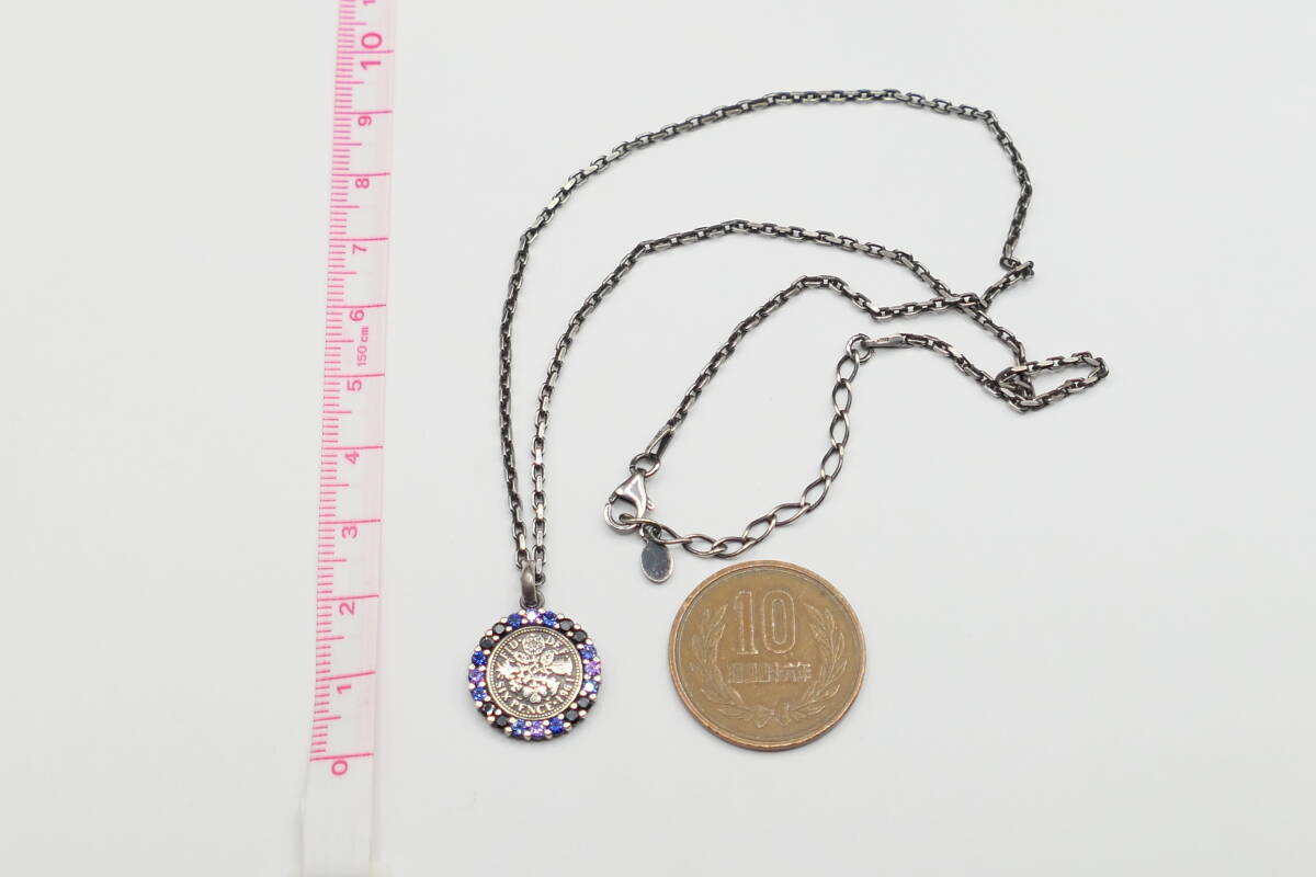 極美品 アクアシルバー 6ペンス コイン ネックレス ペンダント ジルコニア 黒