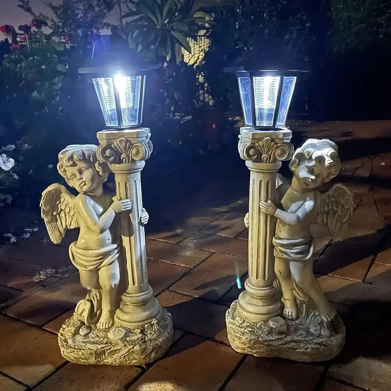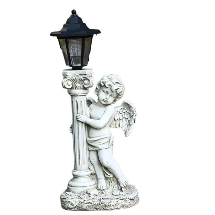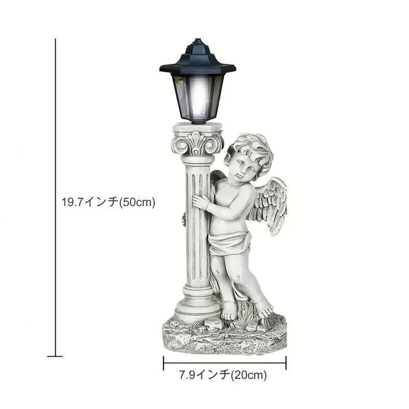 置物 オブジェ 宗教的 エンジェル 右向きの天使 ナイトランプ ガーデン おしゃれ 庭 樹脂 レジン 装飾 オーナメント LED ソーラー充電
