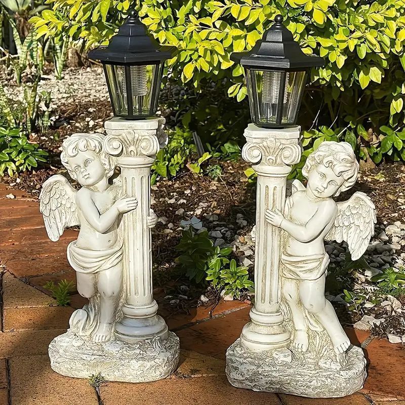 この宗教的な天使の置物は、おしゃれなオブジェとして庭やアウトドアの空間を飾ります。樹脂やレジンで作られたデザインは、耐久性に優れ、優雅な印象を与えます。