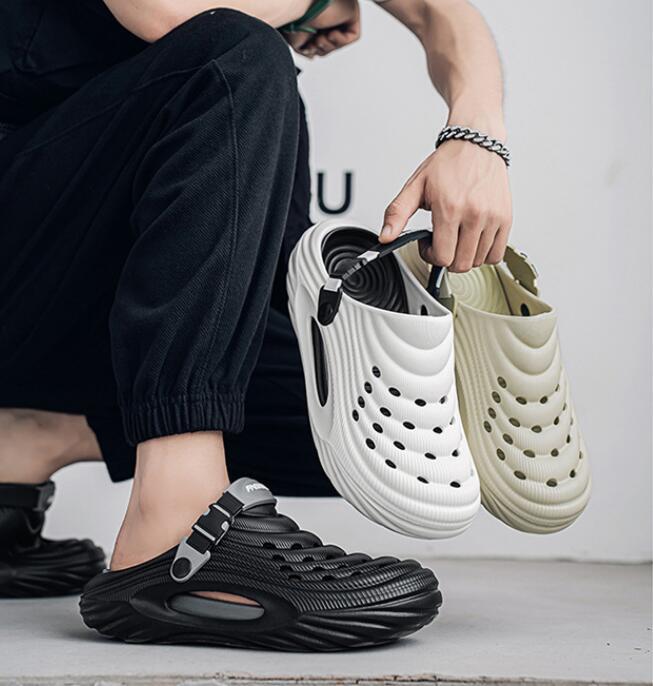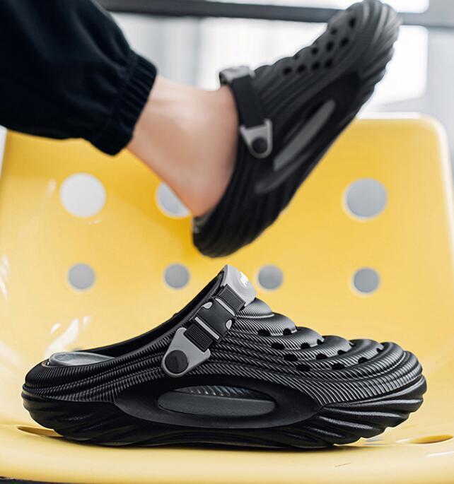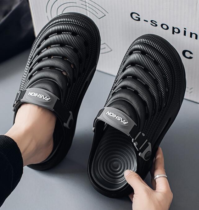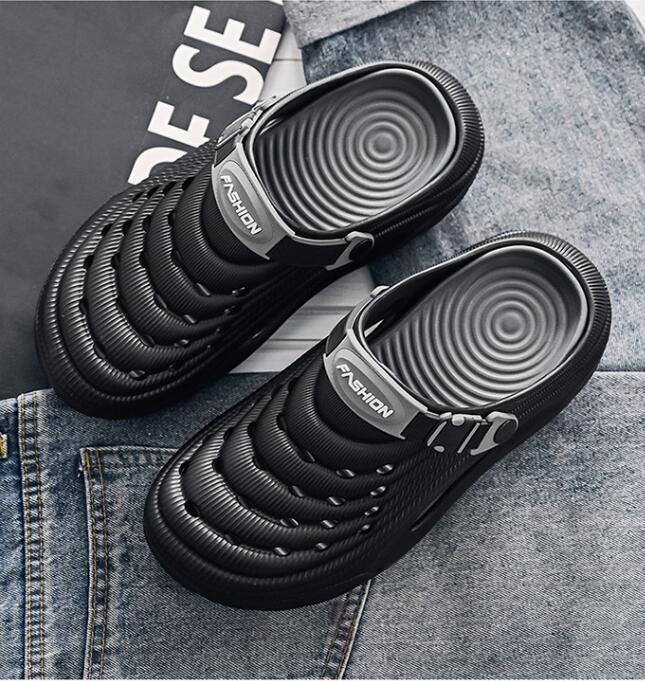 新作推薦夏新品 2waysオシャレスリッパ メンズ ビーチ リゾートサンダル つま先保護 防滑 通気 厚底 黒色 サイズ選択可
