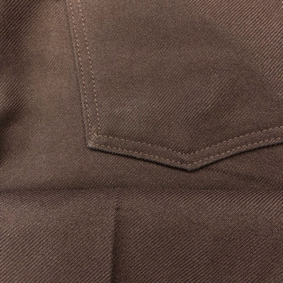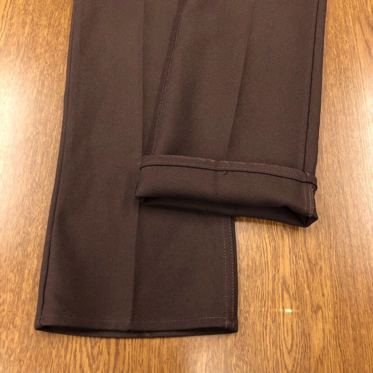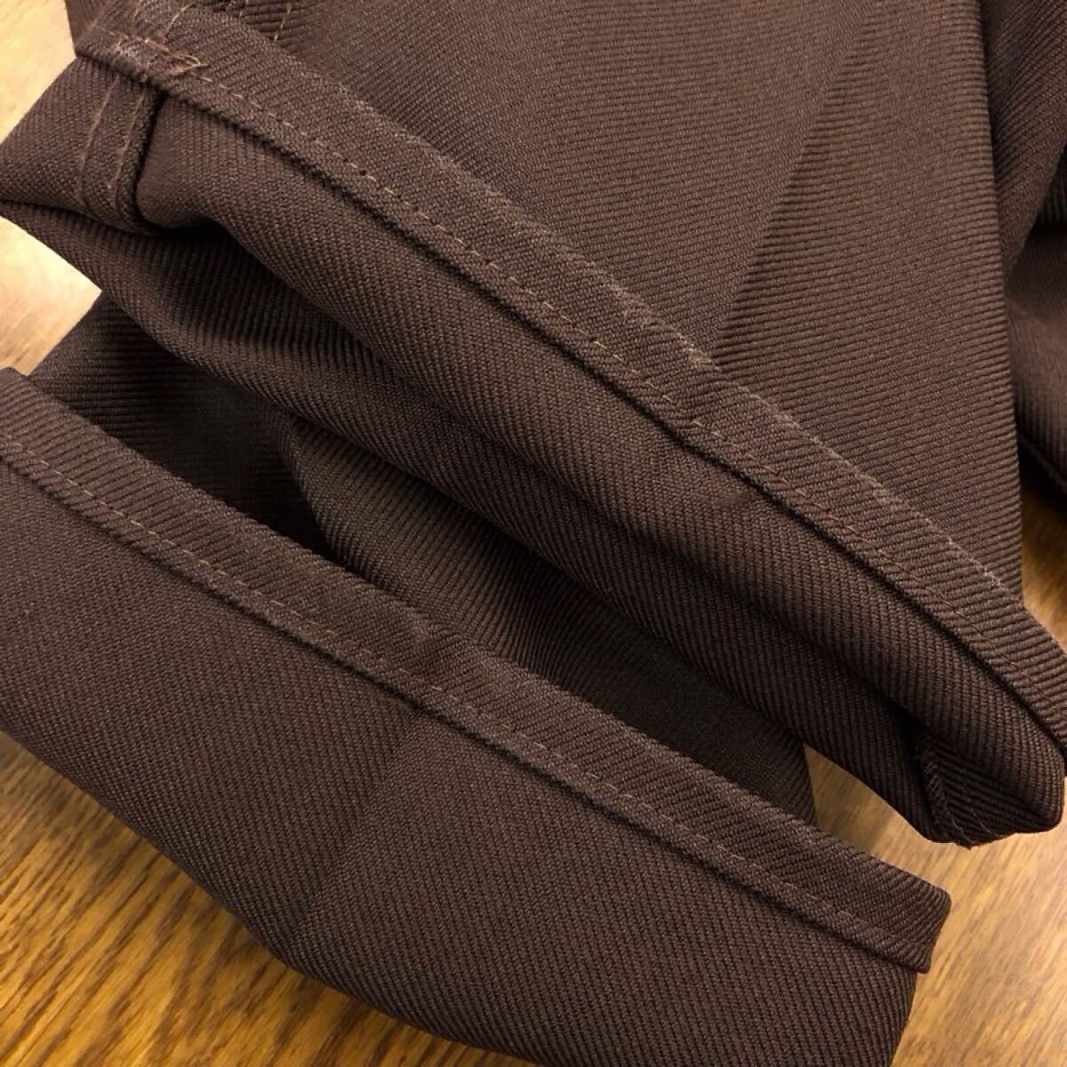 ●ウエスト→フロントボタンやジップは閉じ、ウエストの表中心と後ろ中心を合わせて机や床など平面な場所に置き、フラットに測れるよう生地を軽く手で押さえ、平置きしたパンツの左右端の最上部を計測、実寸した数値×2の表記をしてます。