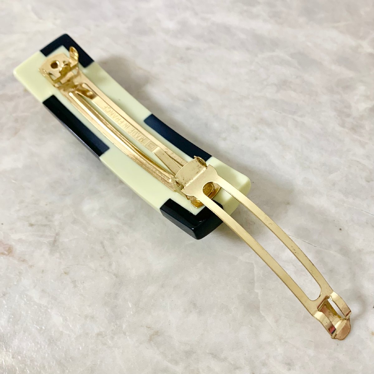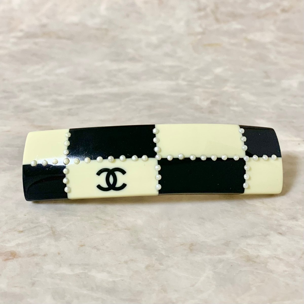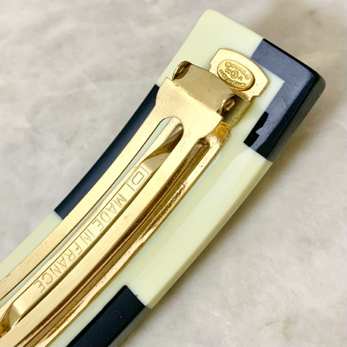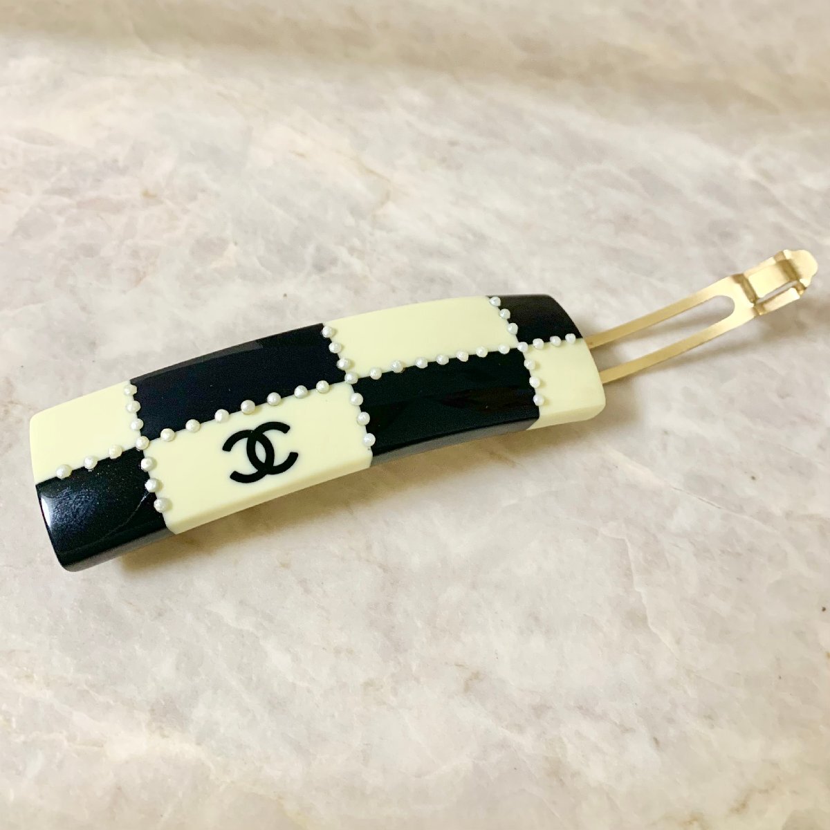 シャネル バレッタ ココマーク パール 真珠 バイカラー ブラック 黒 ゴールド ロゴ 髪留め