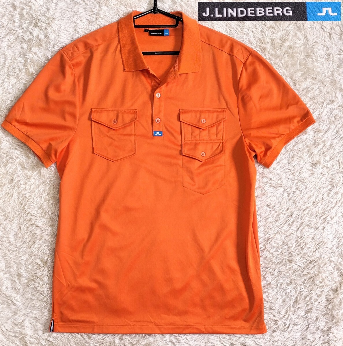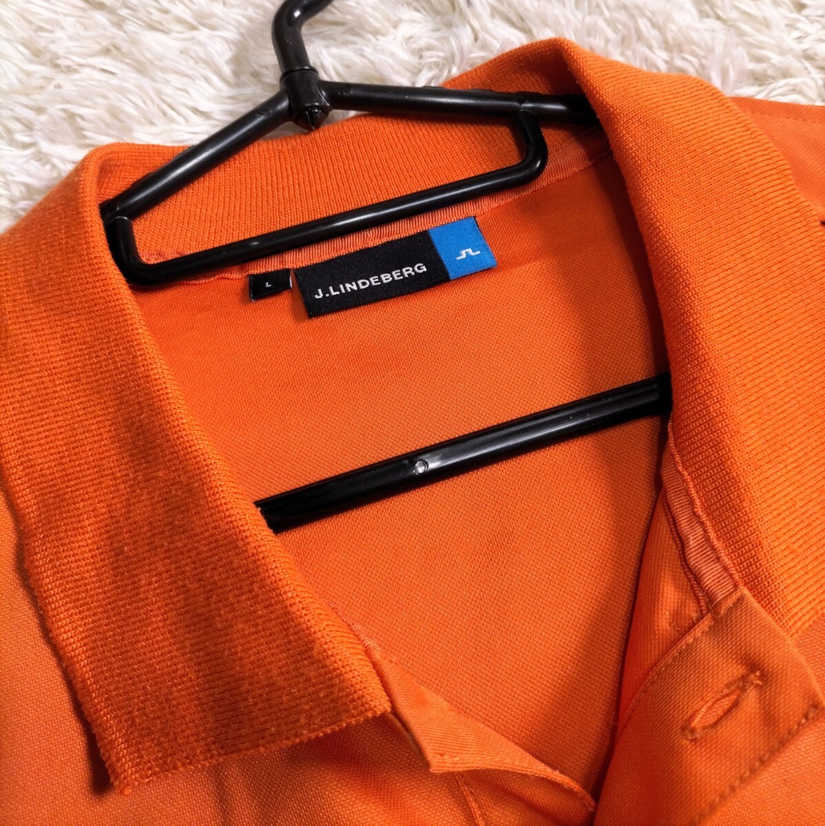 【美品★】Lサイズ J.LINDEBERG 半袖ドライポロシャツ◆オレンジ☆ジェイリンドバーグ (5121)