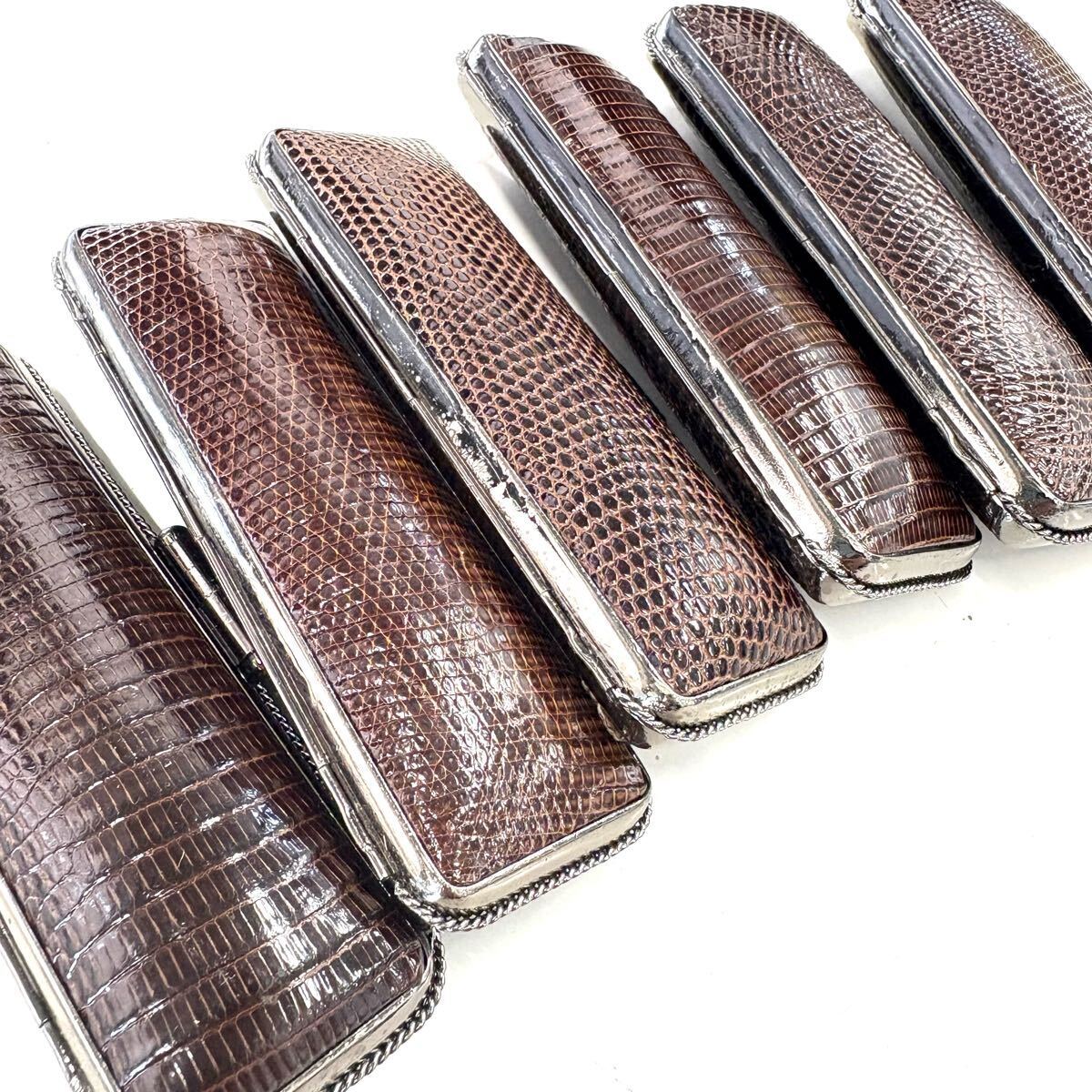 本物・天然のトカゲ皮を使用しており、模様や色合いはすべて一点もの。