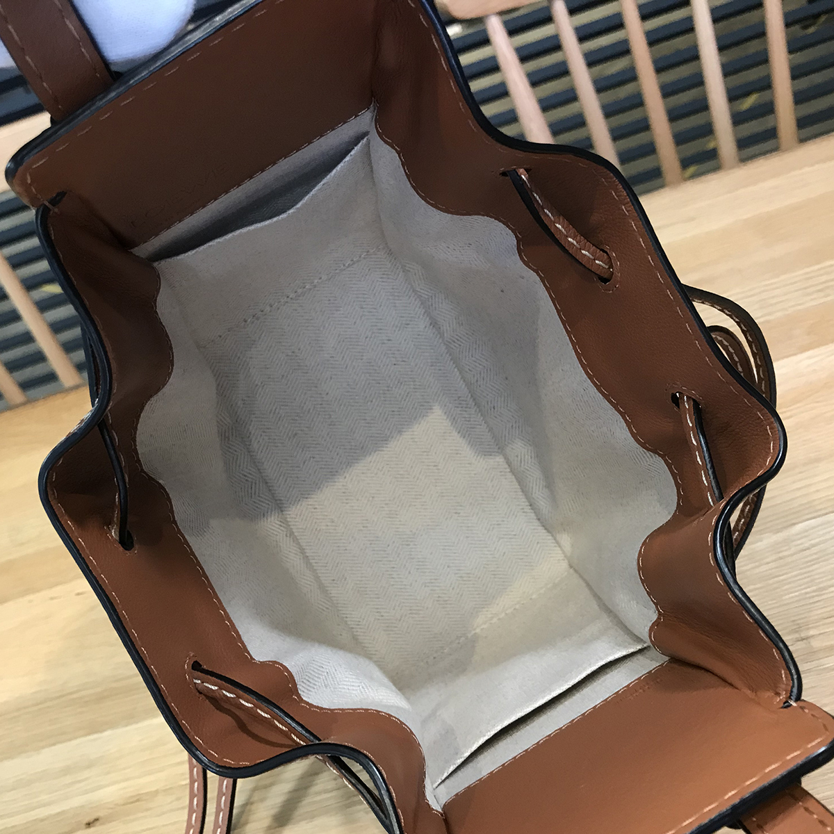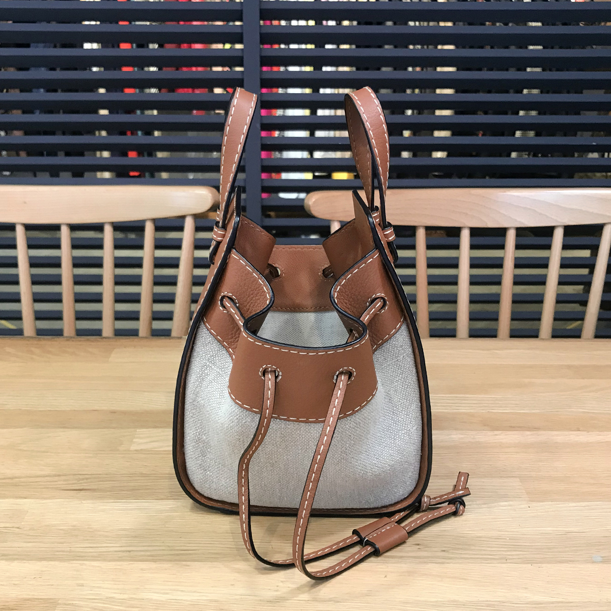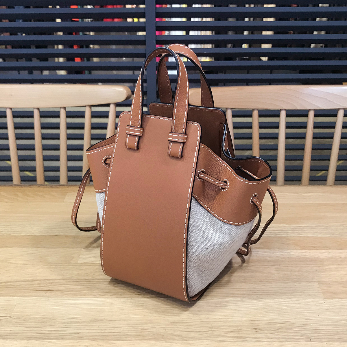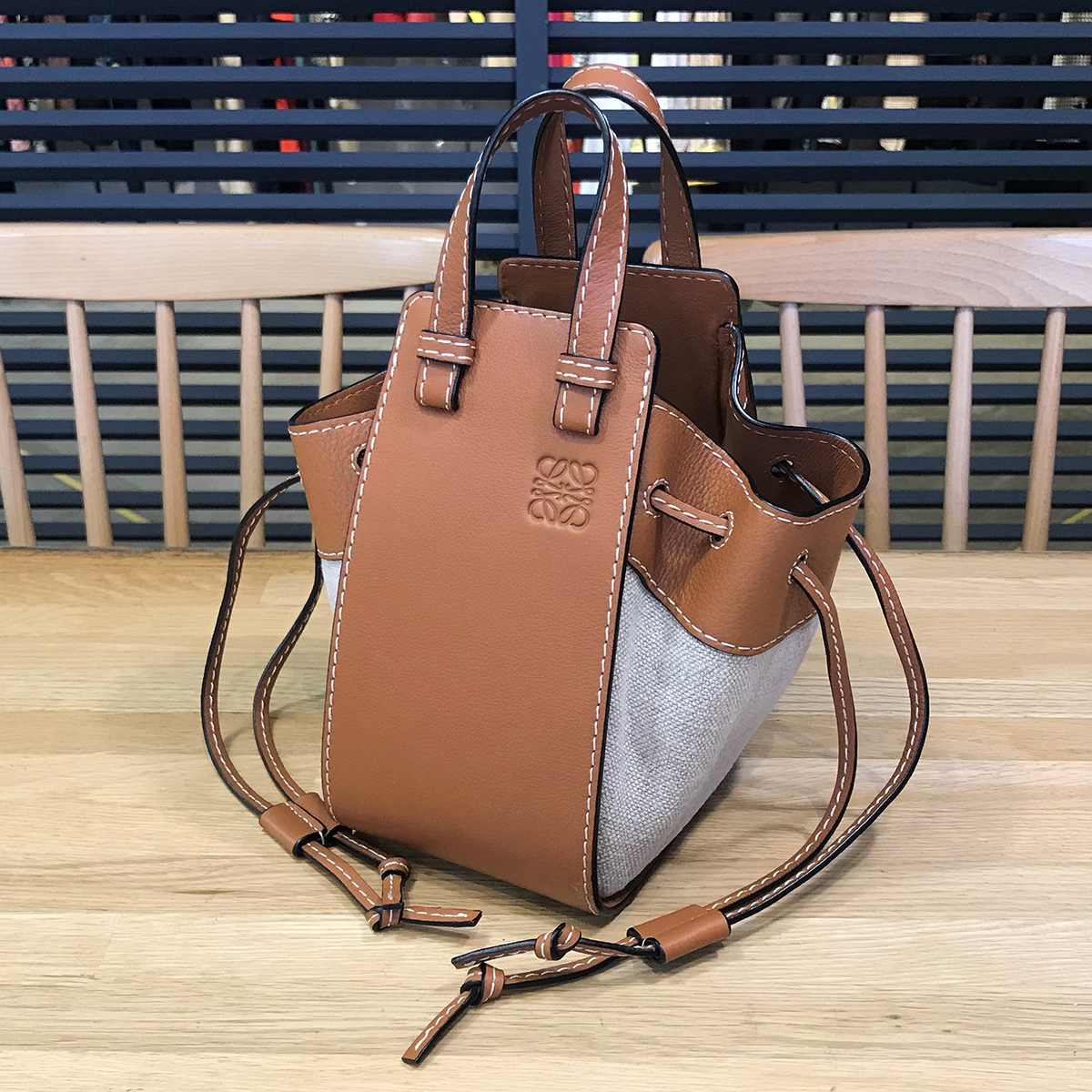 【超美品】ロエベ ハンモック ドローストリング ミニ ナチュラル タン ※ストなし 314.39.V07 キャンバス レザー 13964