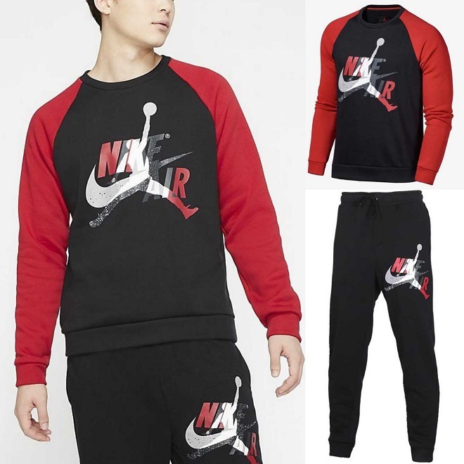 ナイキ XL ジョーダン ジャンプマン クラシック フリースクルー パンツ 定価17050円 ブラック レッド JORDAN JUMPMAN スウェット 上下