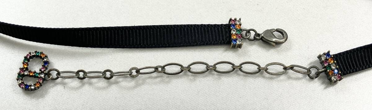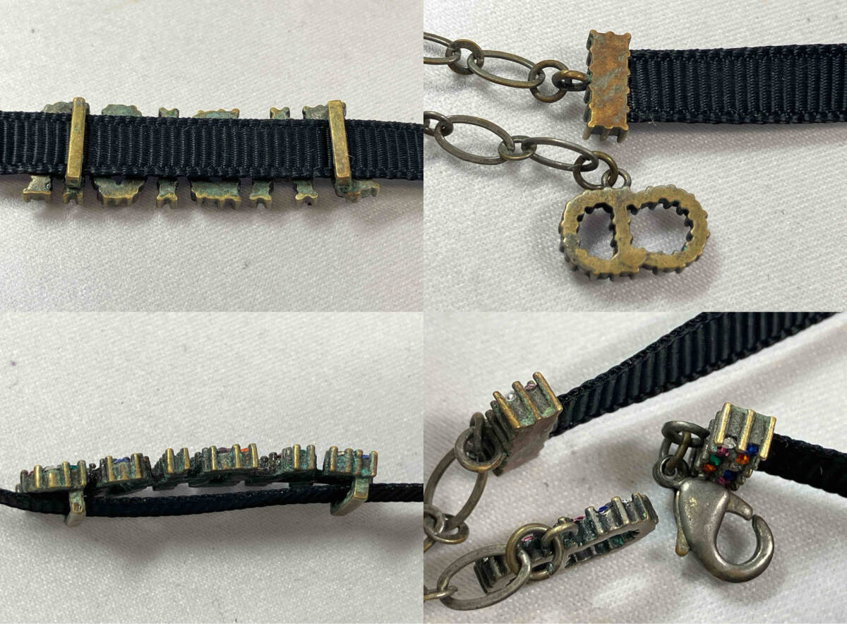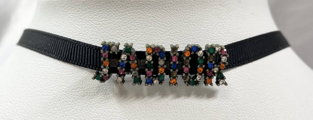 ブランド名:クリスチャン ディオール 品名:チョーカー トップサイズ:約縦10mm、横30mm チェーン全長:約35cm チェーン幅:約3mm チョーカー幅6mm 総重量:約5.2g 状態:金属部分に腐食有り。 ※画像のものが全てです。 ※サイズはスタッフが手作業で計測しており、誤差が生じる事がございます。予めご了承下さい。 ※当店のほとんどの商品は中古のお品物でございます。その為、中古品の時点で小傷はある物とご理解の上お買い求め下さい。 | ||||||