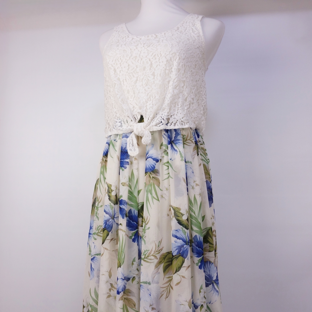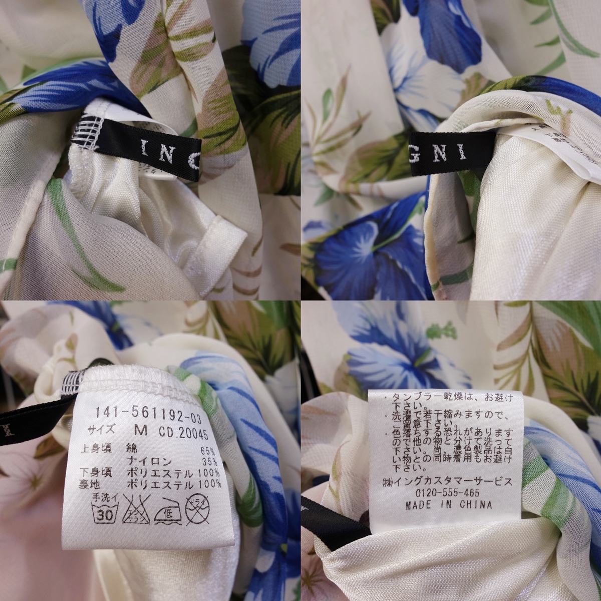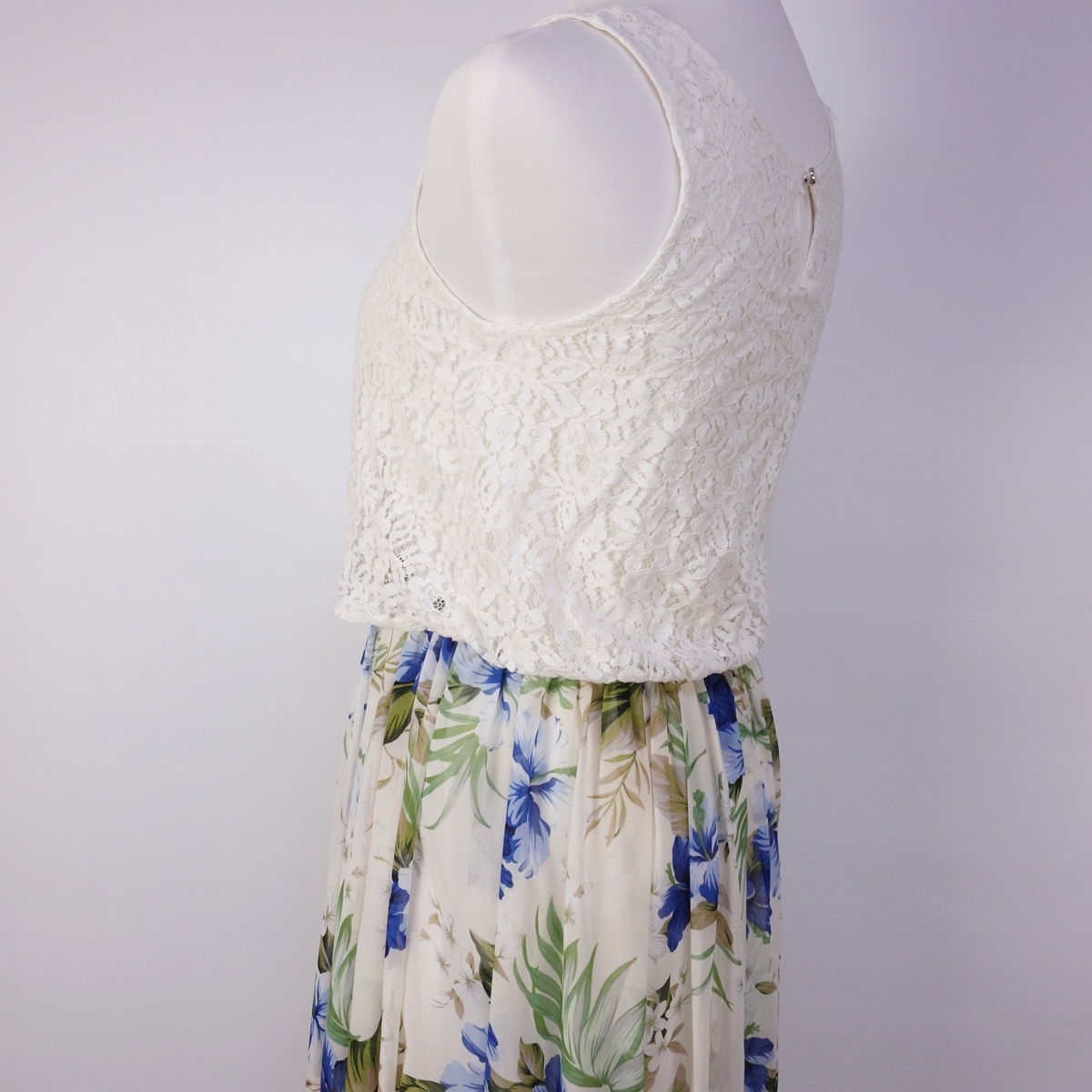 美品 イング INGNI レースクロップドトップ花柄マキシワンピース レディース ノースリーブ ゴムウエスト リゾート Mサイズ FR394