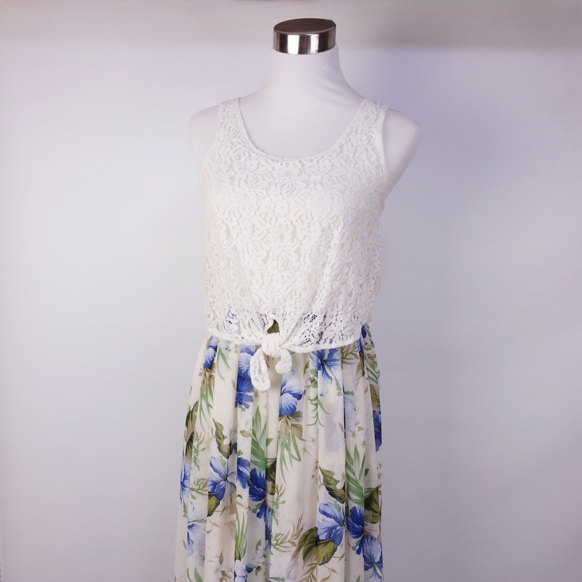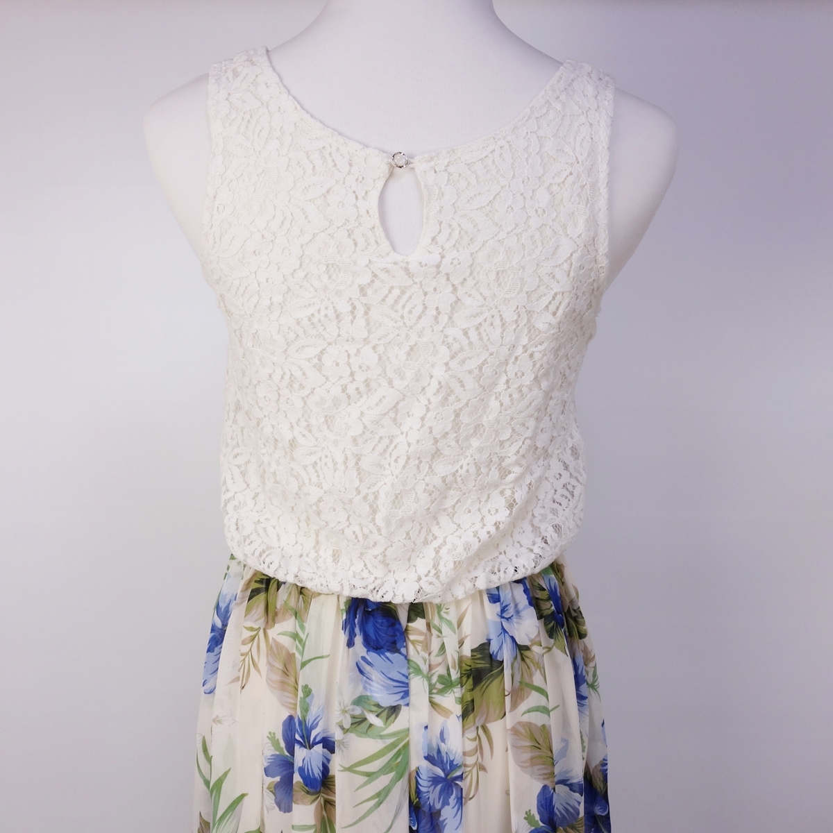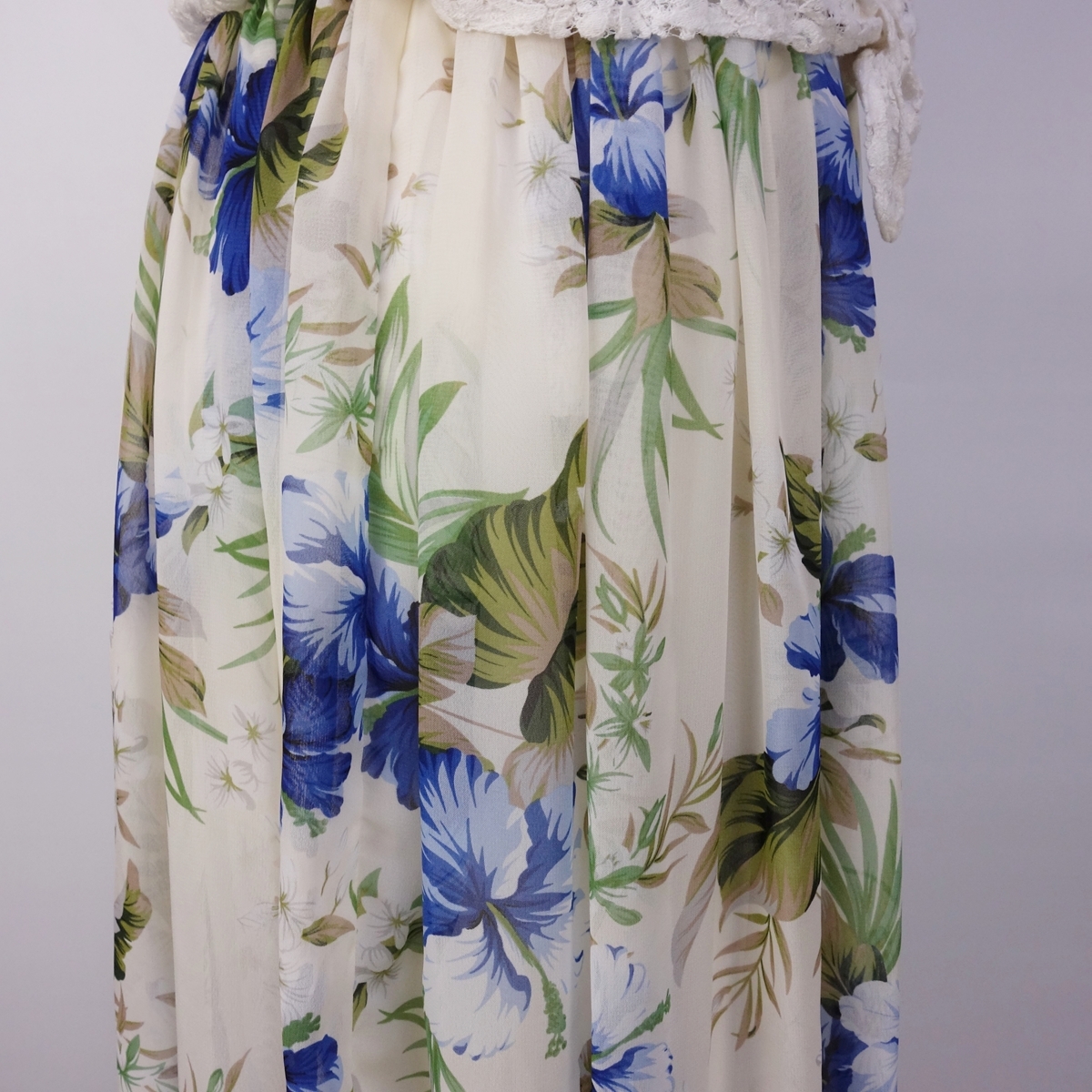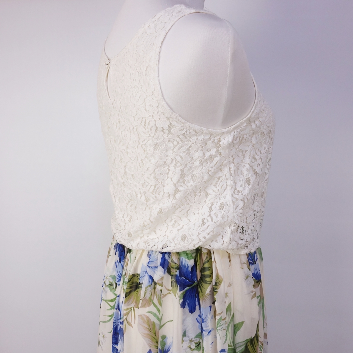 美品 イング INGNI レースクロップドトップ花柄マキシワンピース レディース ノースリーブ ゴムウエスト リゾート Mサイズ FR394