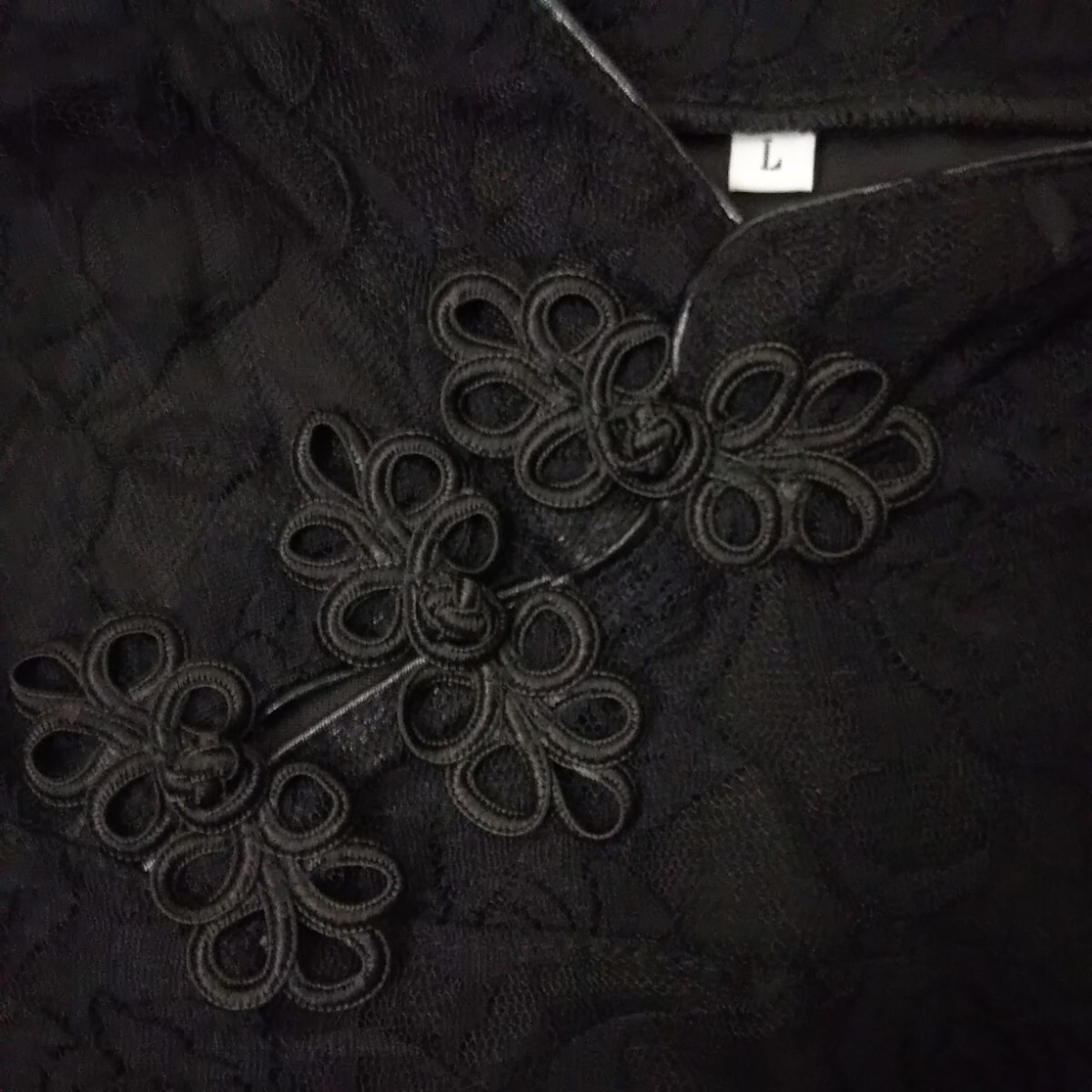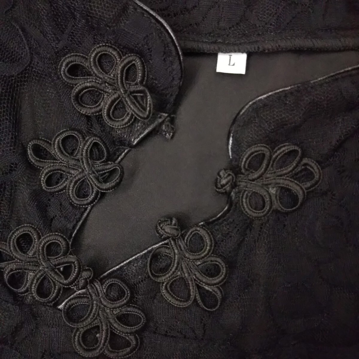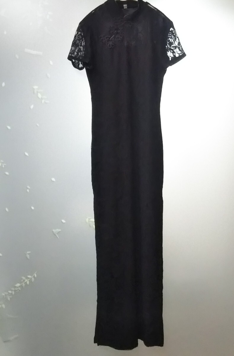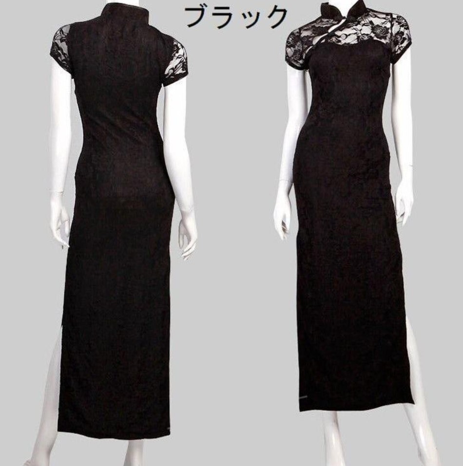 匿/ゆうパケット送込【未使用 /Lサイズ】黒 チャイナ スリット レース ロング ワンピース