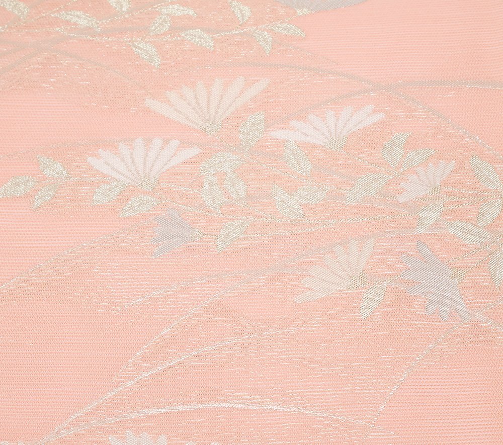 | 紗 西陣織袋帯 ピンク地 金・銀・菊花 仕立て上がり | |