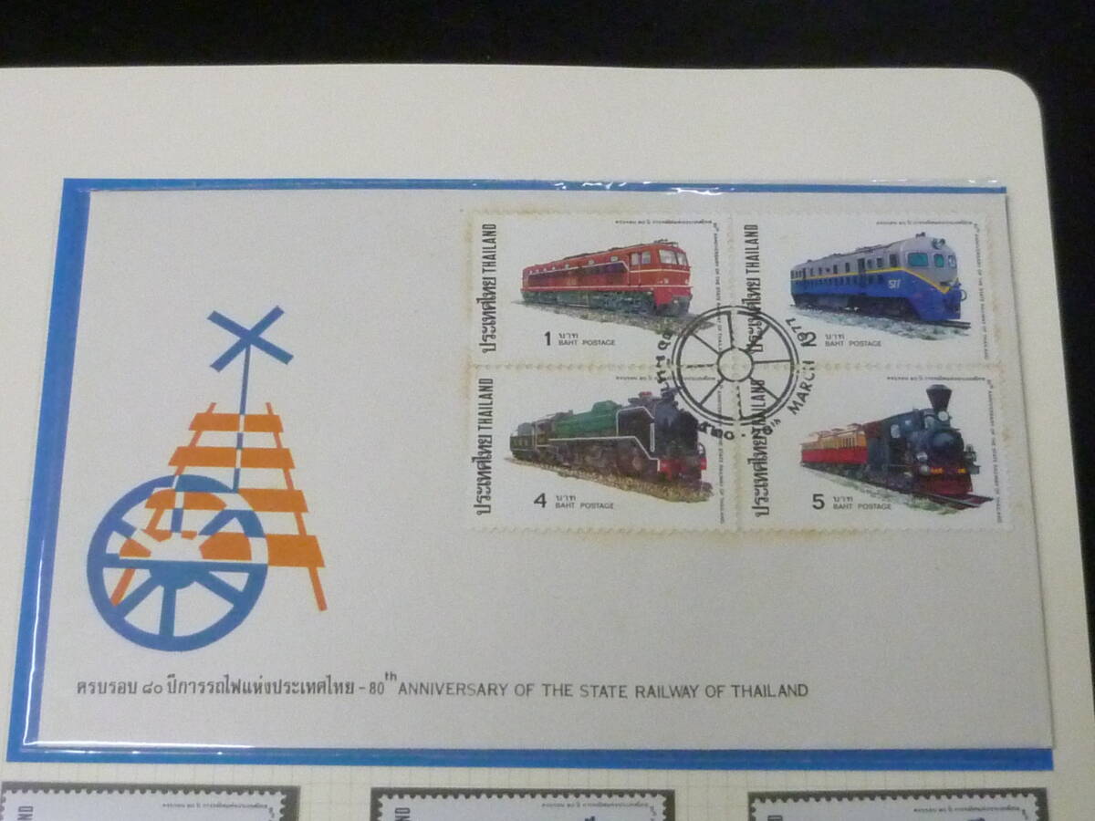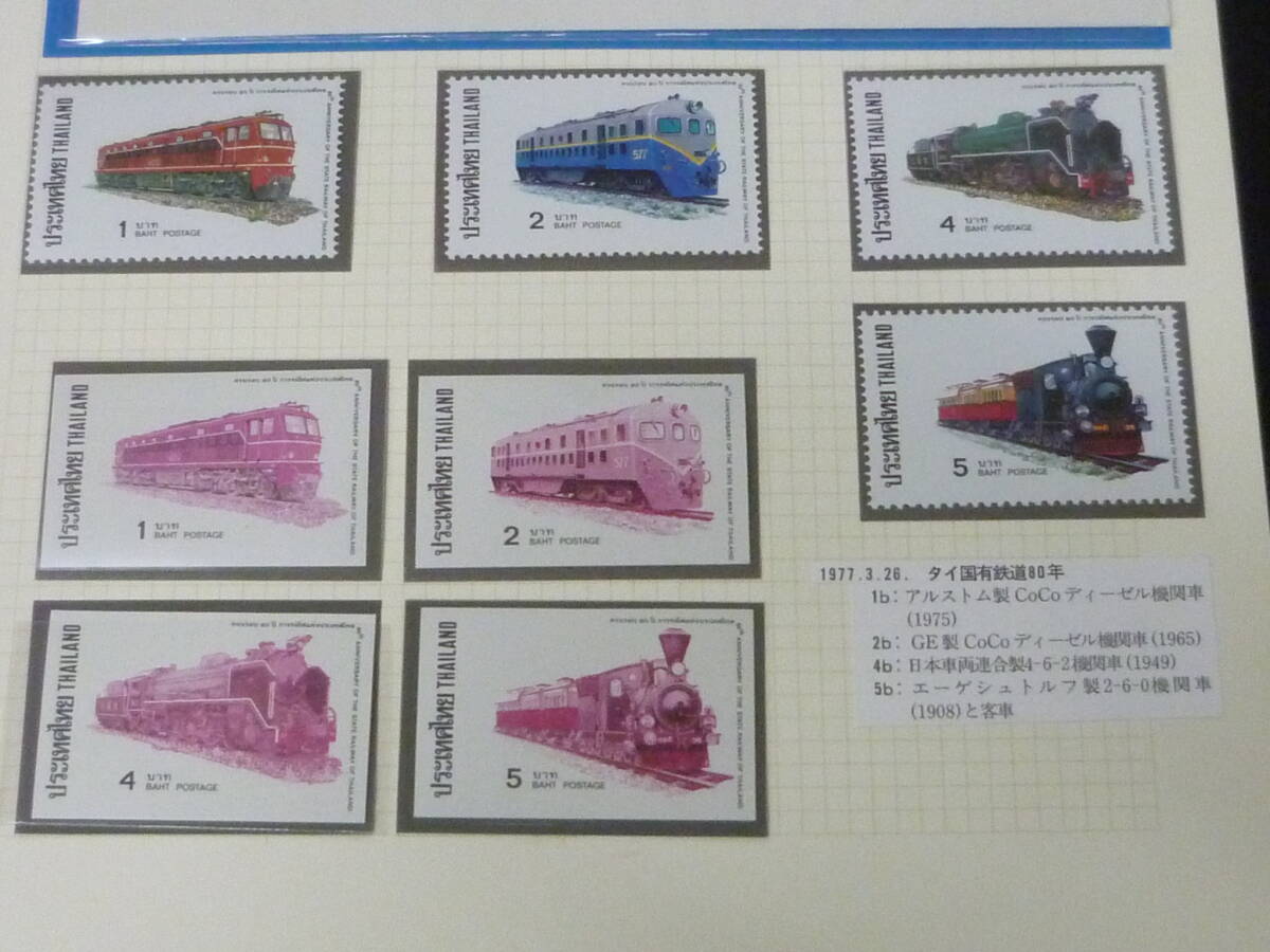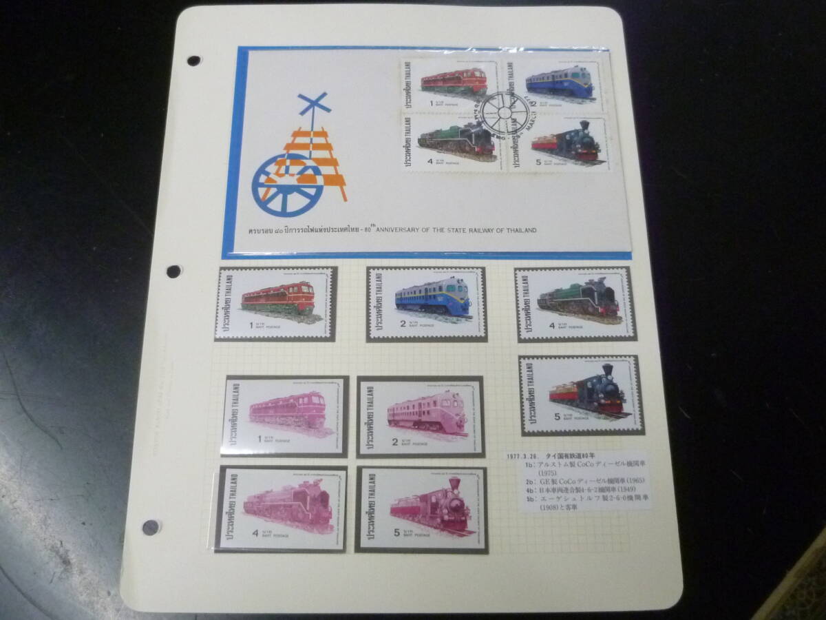 鉄道切手№1 タイ 1977年 タイ国有鉄道80年 4種完+無目打プルーフ4種完+FDC 未使用NH・VF ※説明欄必読