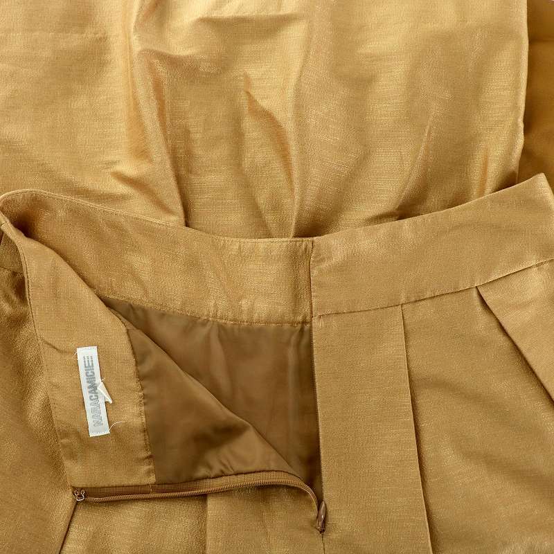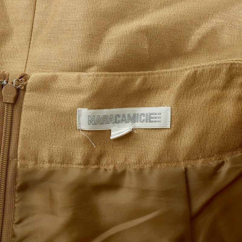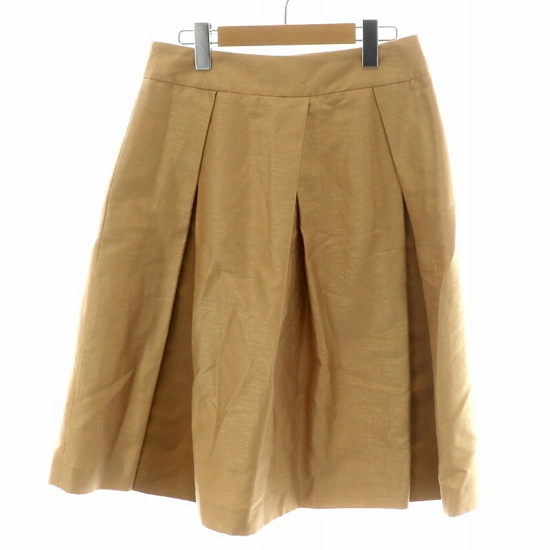 ナラカミーチェ NARA CAMICIE プリーツスカート フレア ひざ丈 総裏地 切替 腰紐付き 2 M キャメル /MP レディース