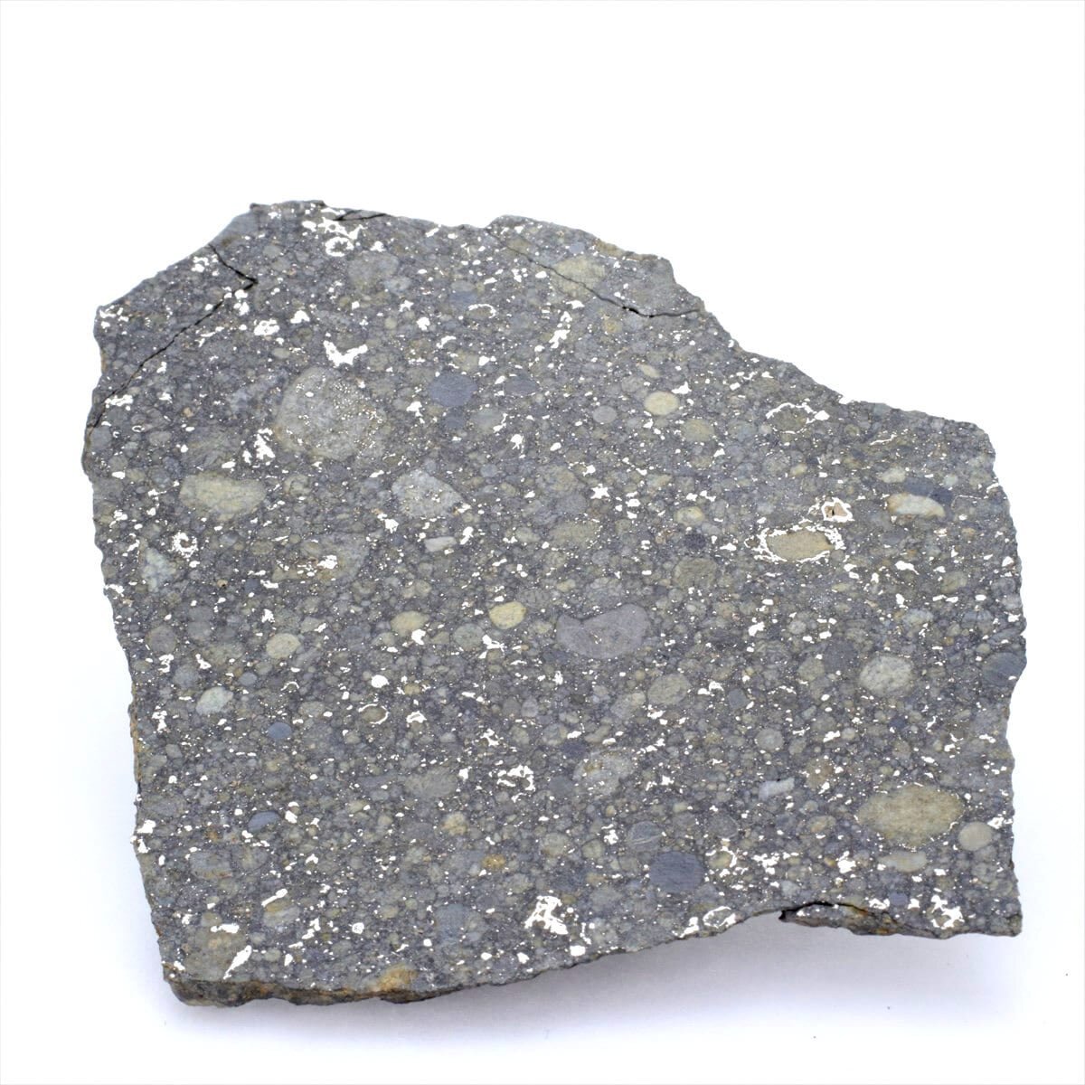金属鉄(元素ではなく金属状態の鉄)の量が少ないのがL(Low iron)です。重量の20-25%が全鉄で、4-10%が結合していない金属鉄なので、あまり磁石にくっつかず内部に見える金属片も少ないです。普通コンドライトの中ではLが地球への落下が一番多く、酸化された状態の鉄を多く含むので鉄橄欖石や紫蘇輝石に富んでいます。