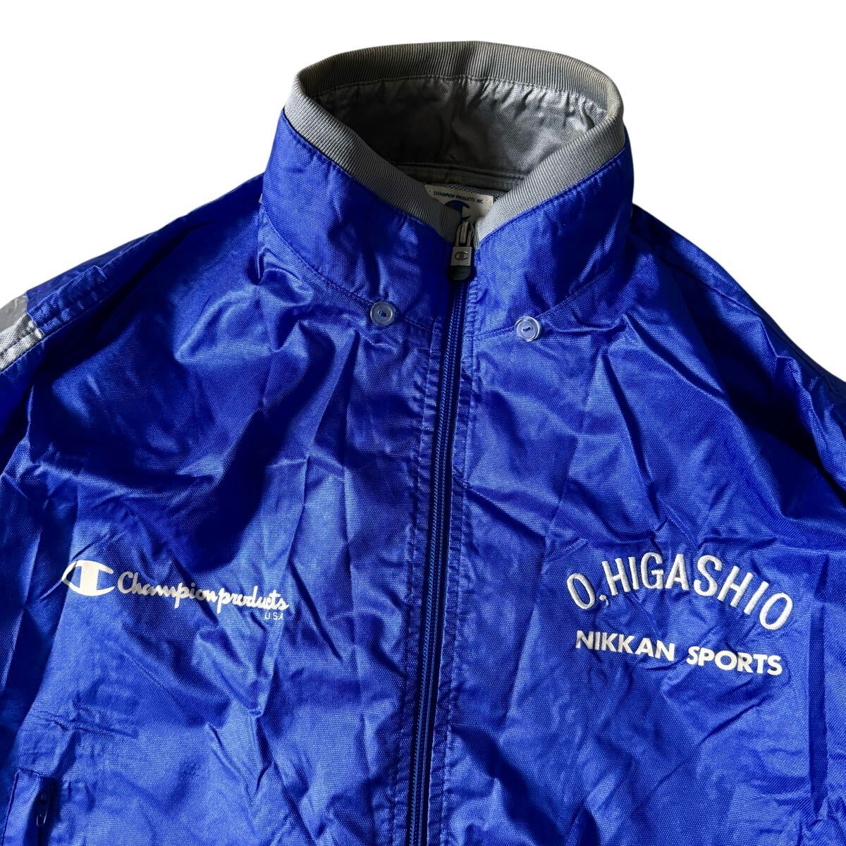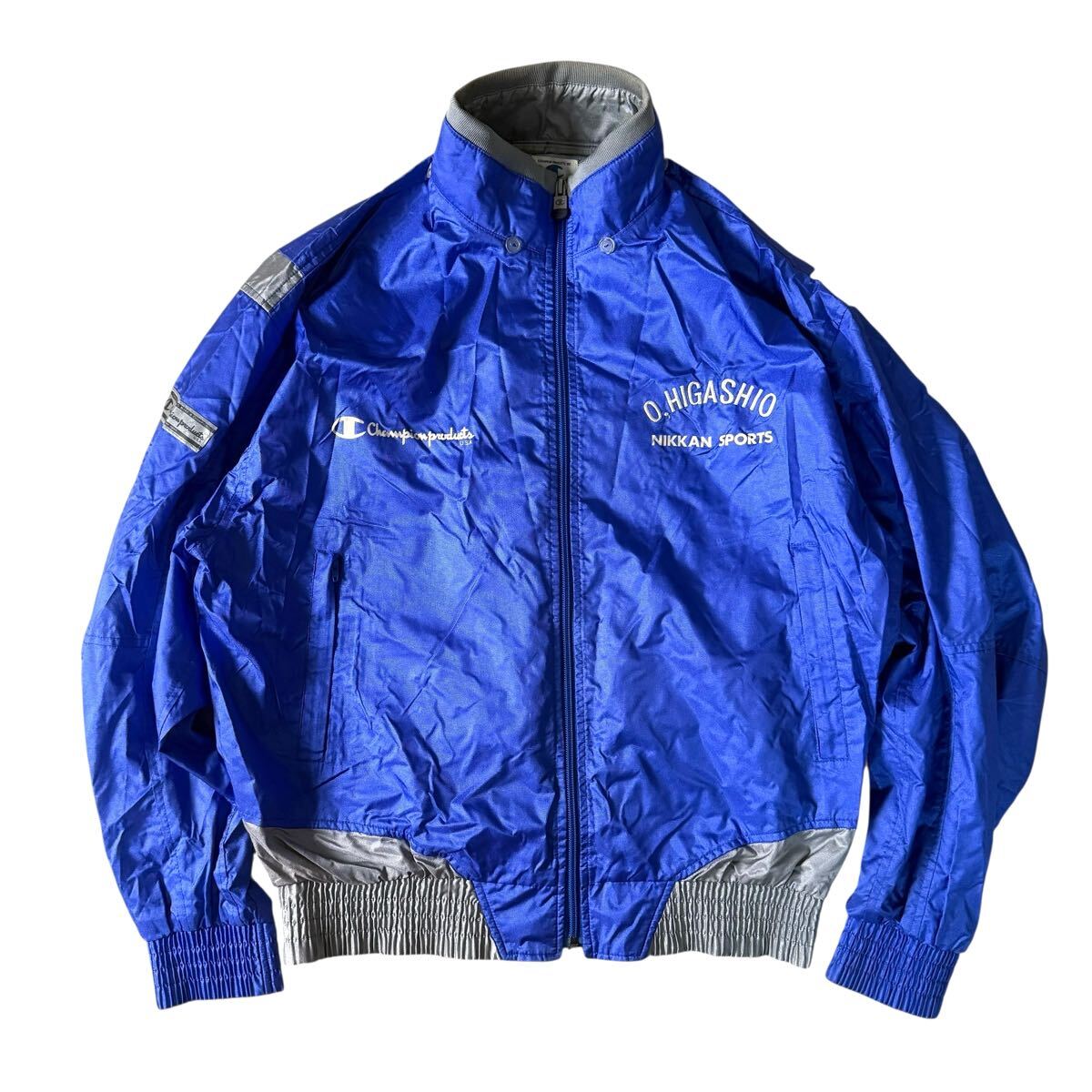 激レア Champion NIKKAN SPORTS O.HIGASHIO 東尾修 ブルゾン ジャケット 青 ブルー サイズ O