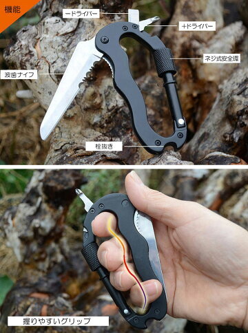 送料無料 多目的 多機能 カラビナ 折りたたみナイフ マルチツール アウトドア キャンプ
