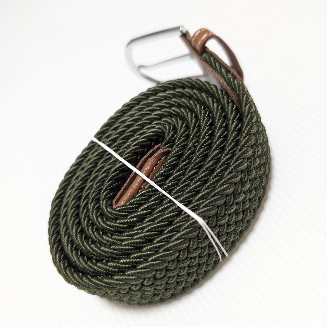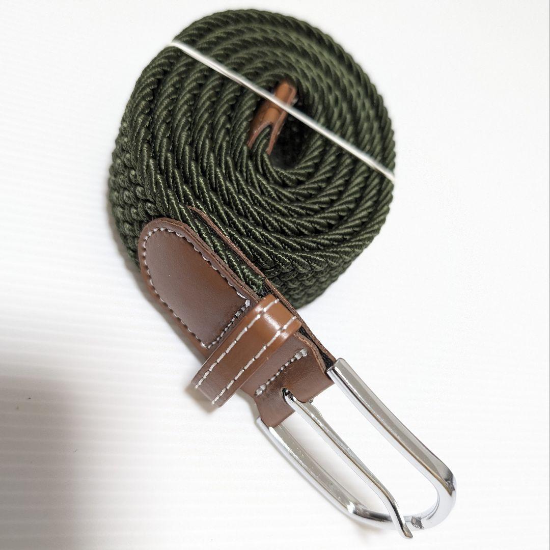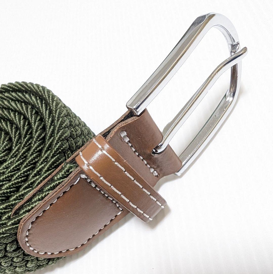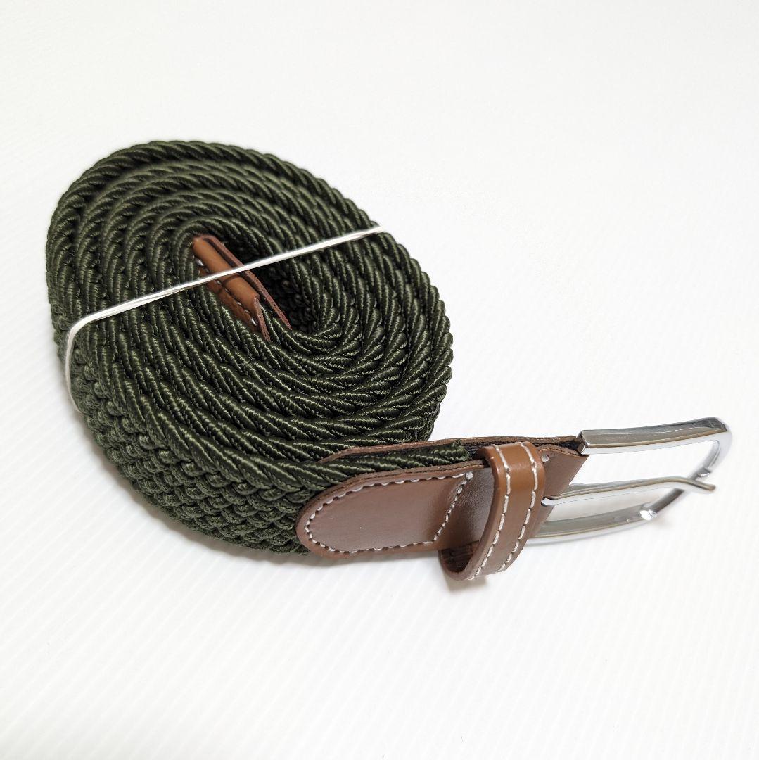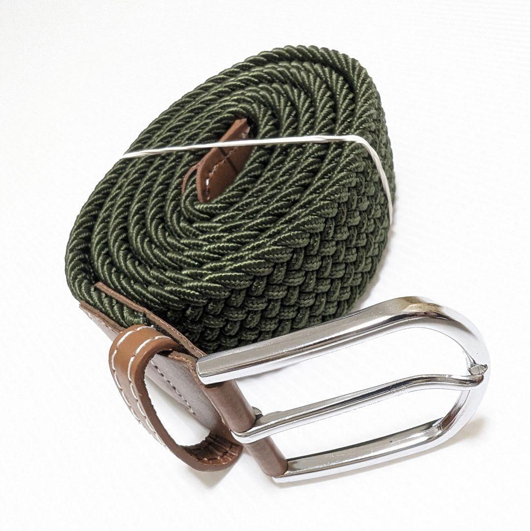 パンツに合わせやすいモスグリーン/ブラウンのツートンカラーベルト