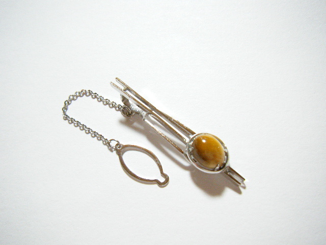 ★SILVER 天然石 茶系 ネクタイピン タイピン 【WK22】
