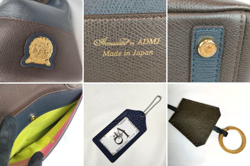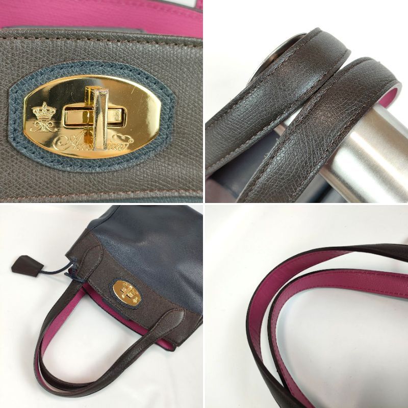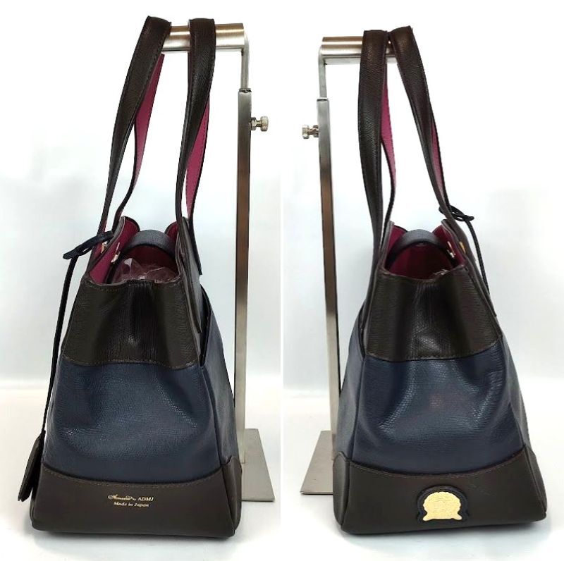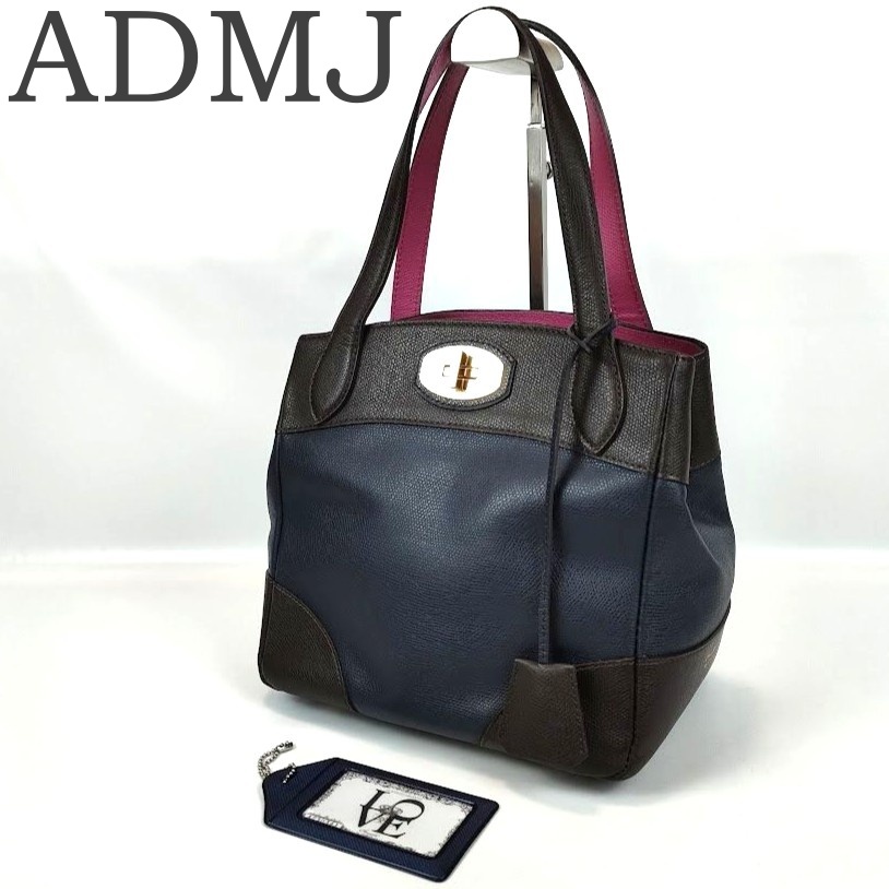 良品 ADMJ エーディーエムジェイ トートバッグ レディース レザー ネイビー 紺 ブラック 黒 ベラトート バイカラーハンドバッグ 鞄 女性用