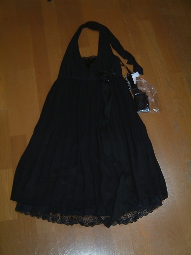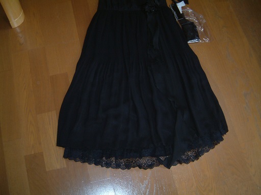 新タグ!黒×シフォン×プリーツワンピドレス 11号  結婚式2次会