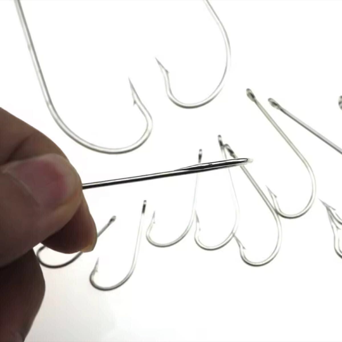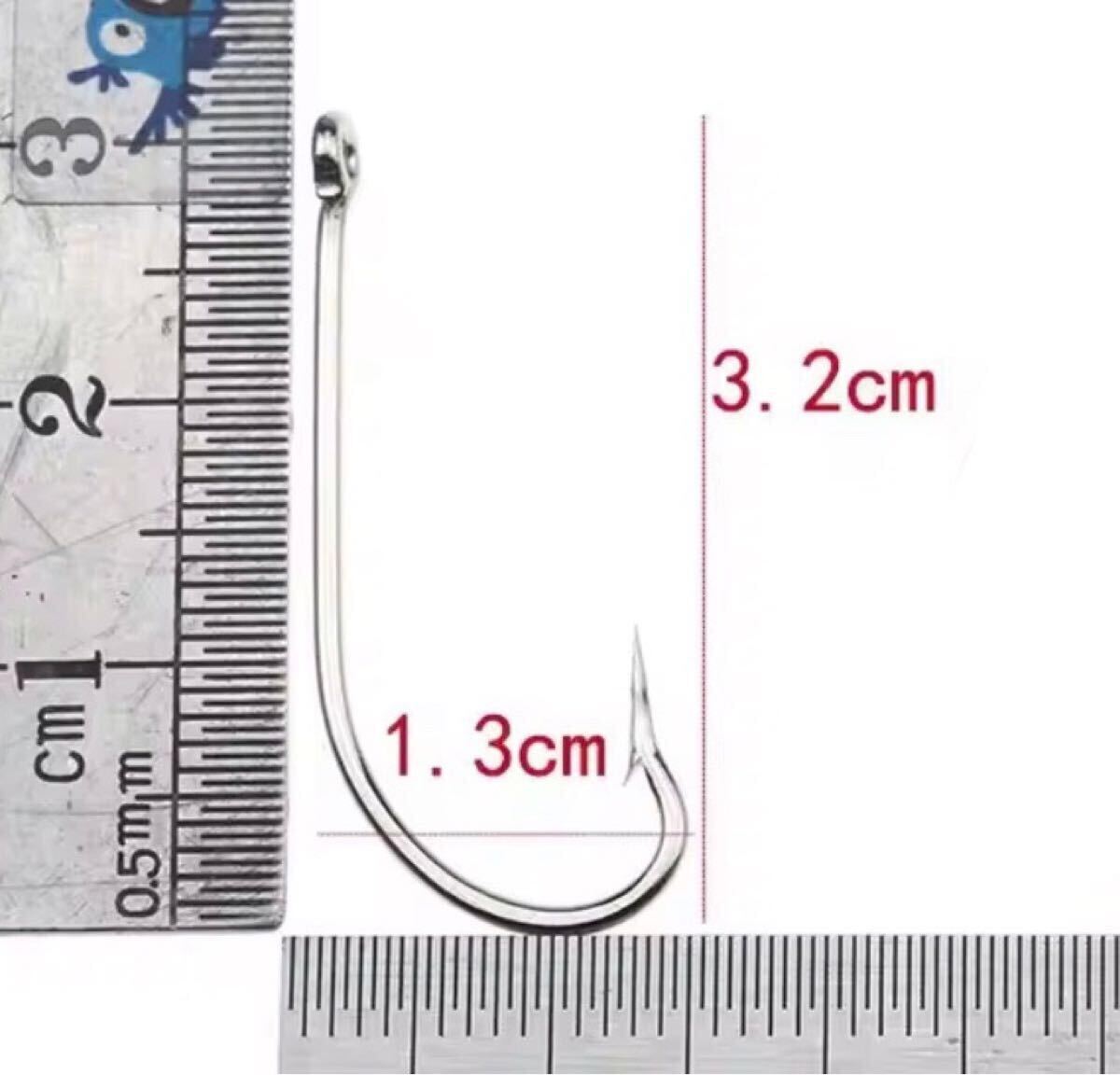 実は本商品はある人のために輸入をはじめました。彼、T氏は2023年に70代で他界しました。とにかく鰻の穴釣りの名人で、出品者は何回も同行したことがあるのですが、かならず出品者の倍以上の鰻を捕獲する人でした。視力が衰えてきて仕掛作りに苦労していたので、出品者が毎年(とは言っても晩年の2年くらいでしたが)仕掛に関して準備しました。T氏はとにかく「大きい針、大きい針」と出品者にリクエストしました。最終的にT氏のお気に入りになったのが本商品です。5LからLまでを出品者の手のひらに乗せて見せると、T氏その時の気分で「今日はコレ」とニヤリとしなが仕掛を選んで川に入って行きました。山間部や上流ではなく、実は目と鼻の先に海がある場所でもこれらの針を使っていました。小さい鰻はリリースしていたので、それをさける目的があったのだとも思われます。余談でした。